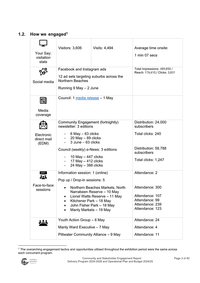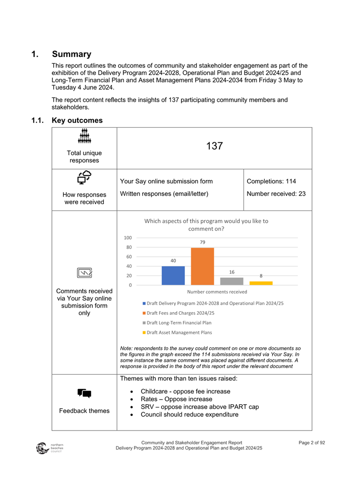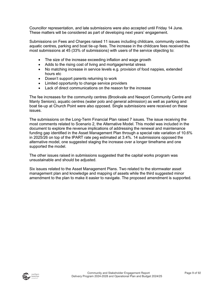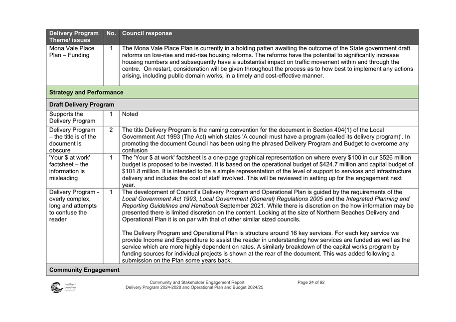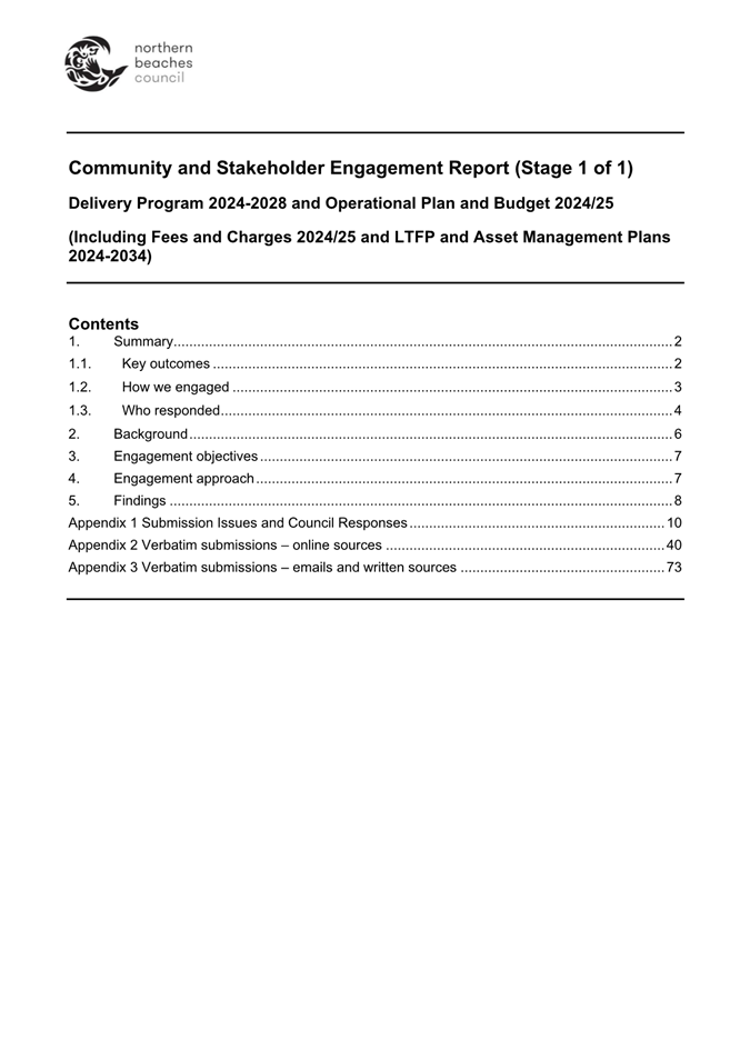 Attachment 1 : Community and Stakeholder Engagement Report - ITEM 9.1 - Northern Beaches Council Meeting - 25 June 2024