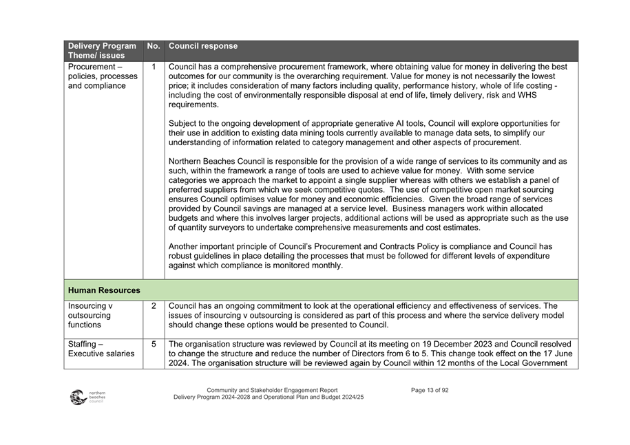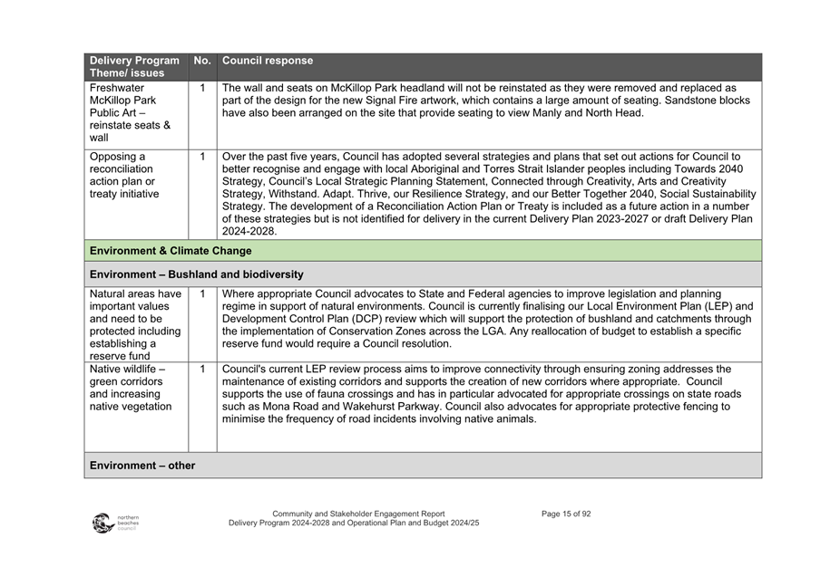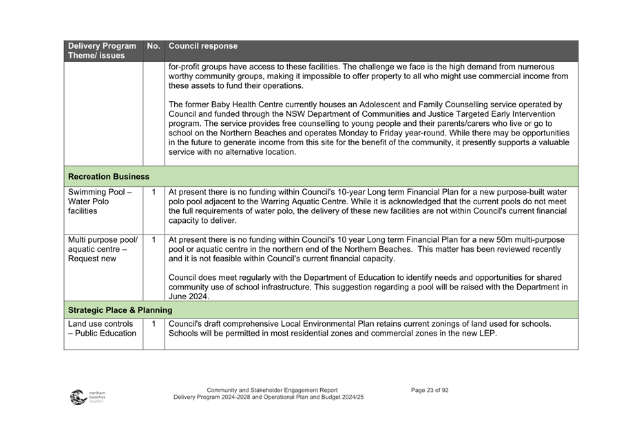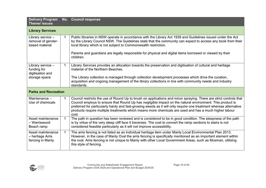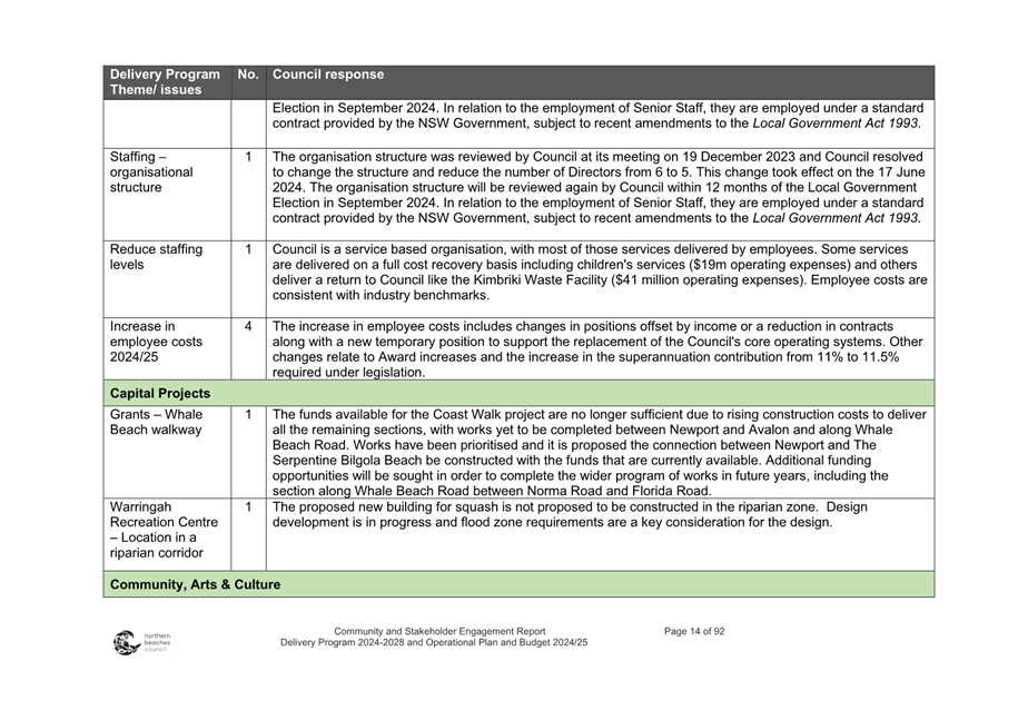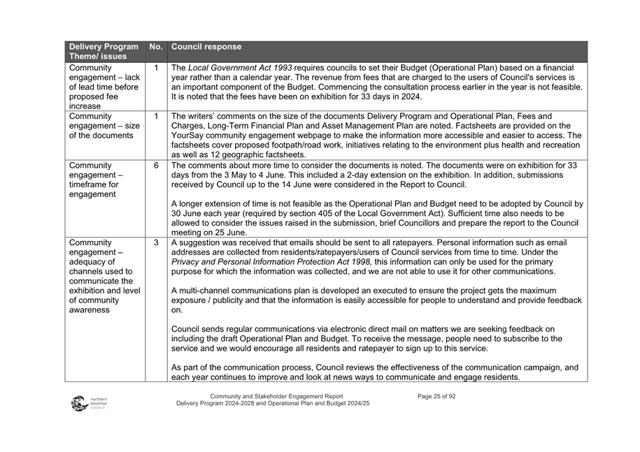 Attachment 1 : Community and Stakeholder Engagement Report - ITEM 9.1 - Northern Beaches Council Meeting - 25 June 2024
