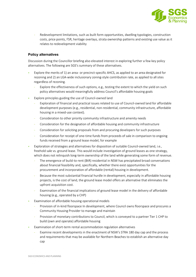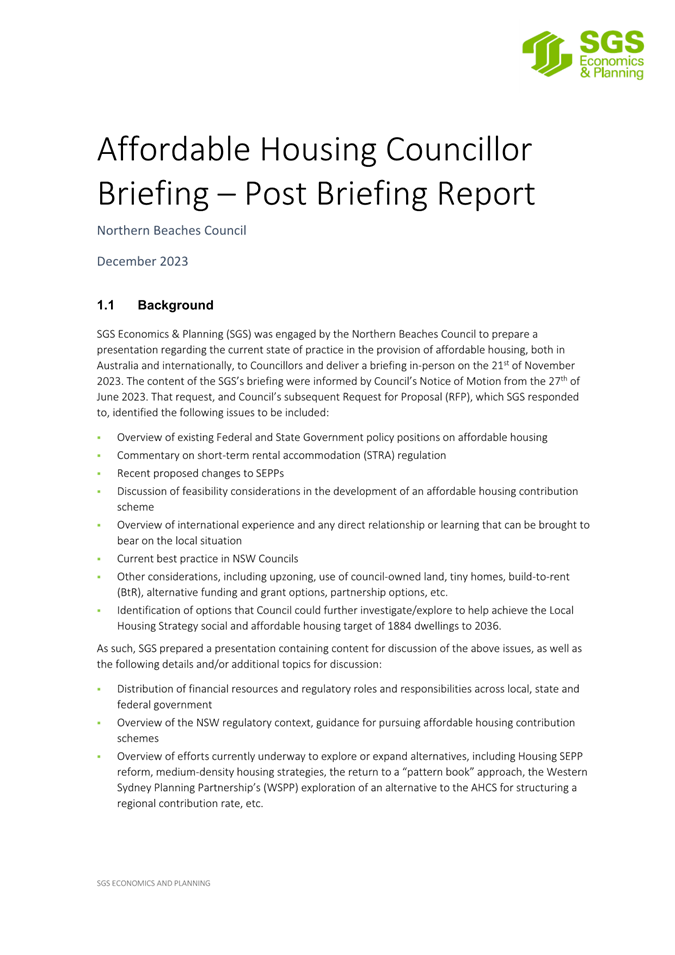 Attachment 4 : Council Affordable Housing Briefing Summary Report - ITEM 12.3 - northern beaches council meeting - 25 June 2024