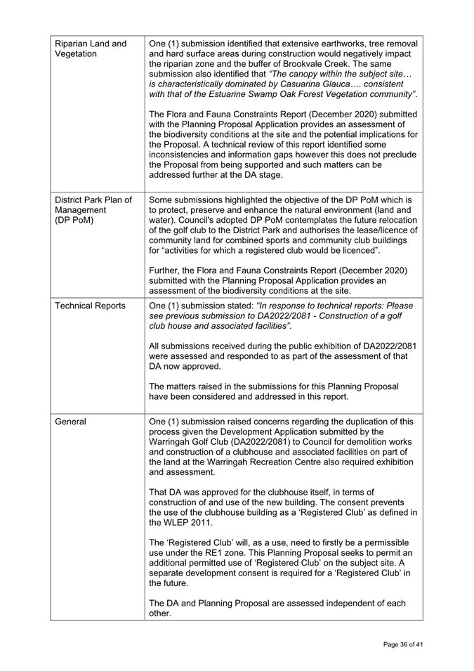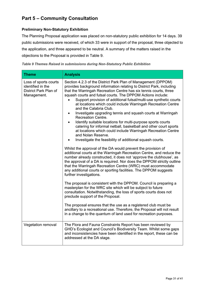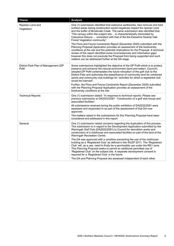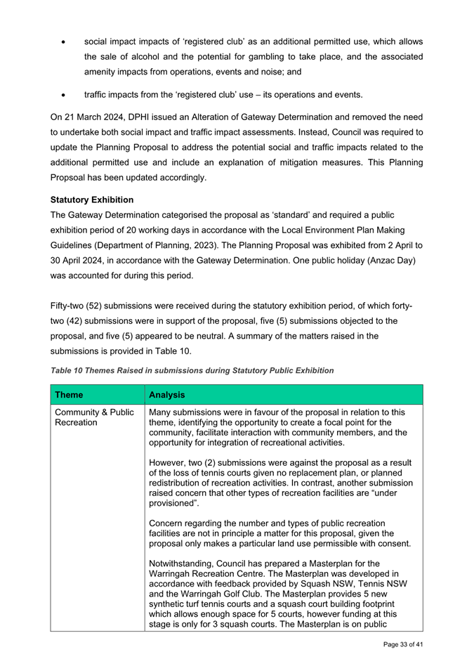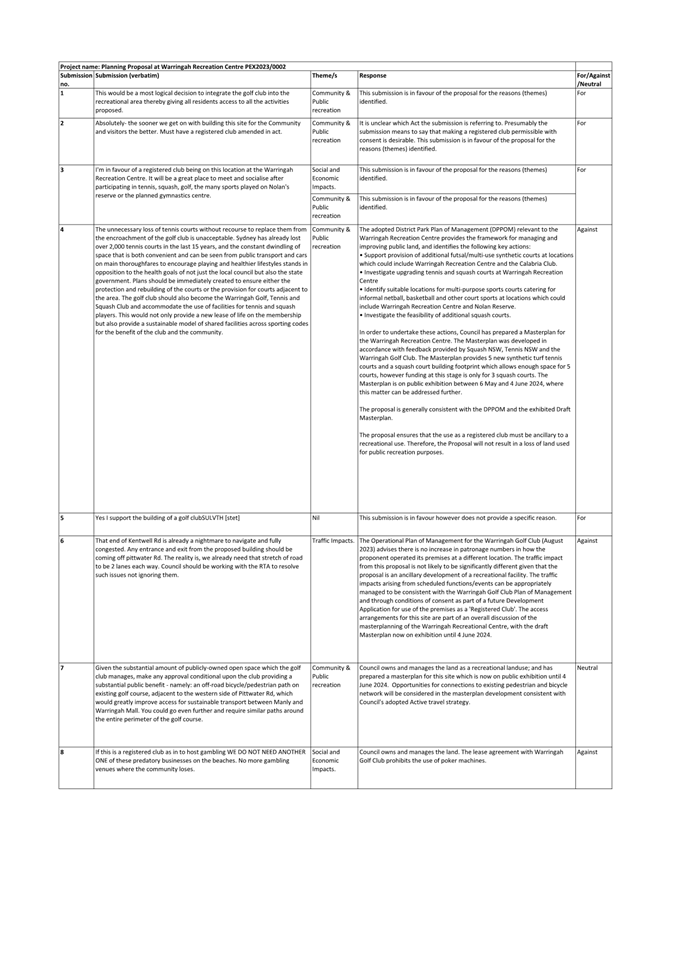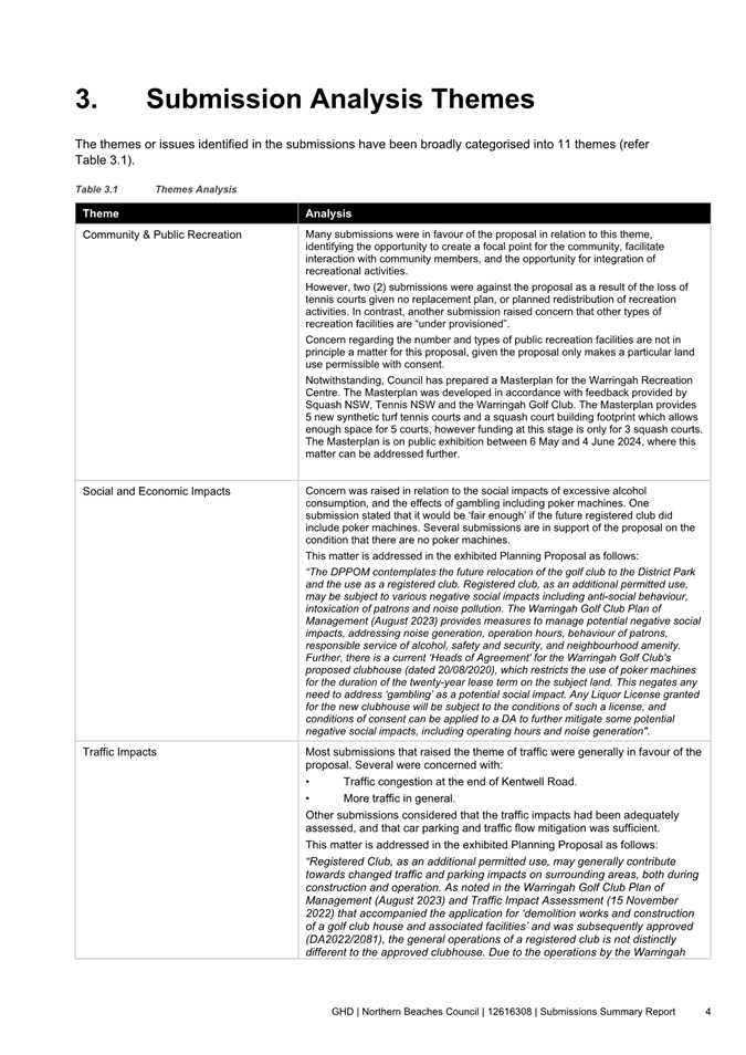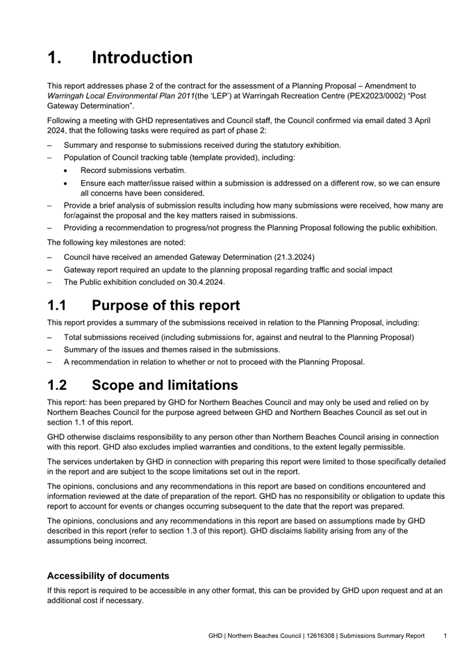 Attachment 1: GHD Planning Proposal for Warringah Recreation Centre Submissions Report (May 2024)............................................................................... 1008