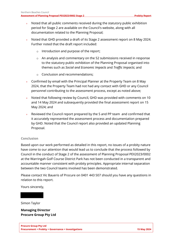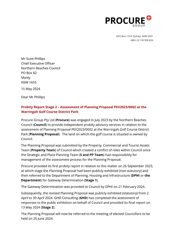 Attachment 3 : Procure Group Probity Report May 2024 - ITEM 12.4 - northern beaches council meeting - 25 June 2024
