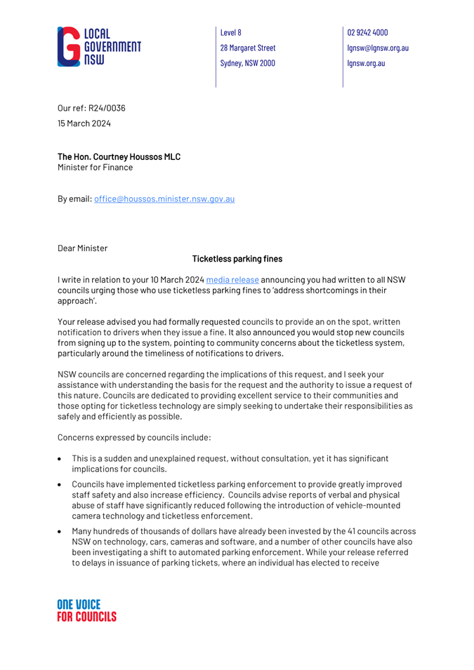 Attachment 3: Letter from LG NSW to Hon Courtney Houssos MLC, Minister for Finance 1080