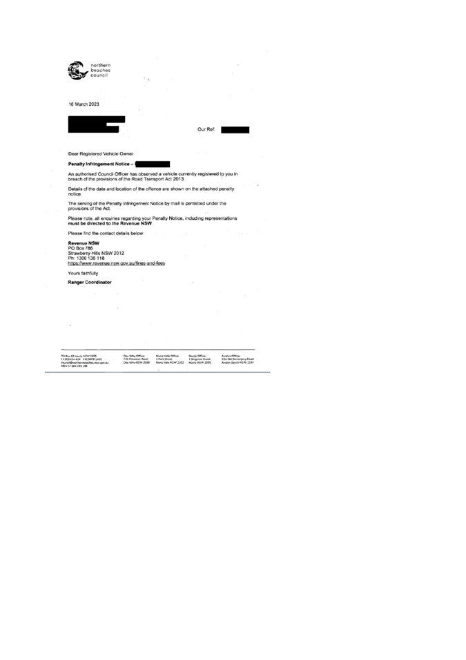 Attachment 5 : Examples of Hardcopy and ticketless fines - ITEM 12.5 - Northern Beaches Council Meeting - 25 June 2024