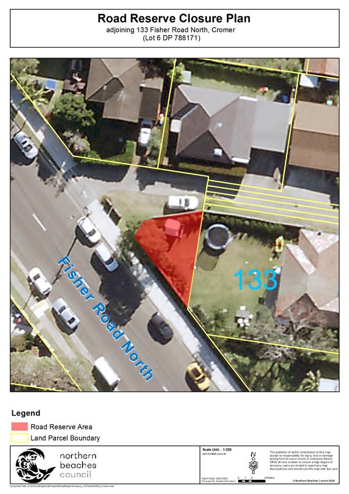 Attachment 1 : Proposed Road Reserve Closure Plan adjacent to 133 Fisher Road North, Cromer - ITEM 13.1 - northern beaches council meeting - 25 June 2024