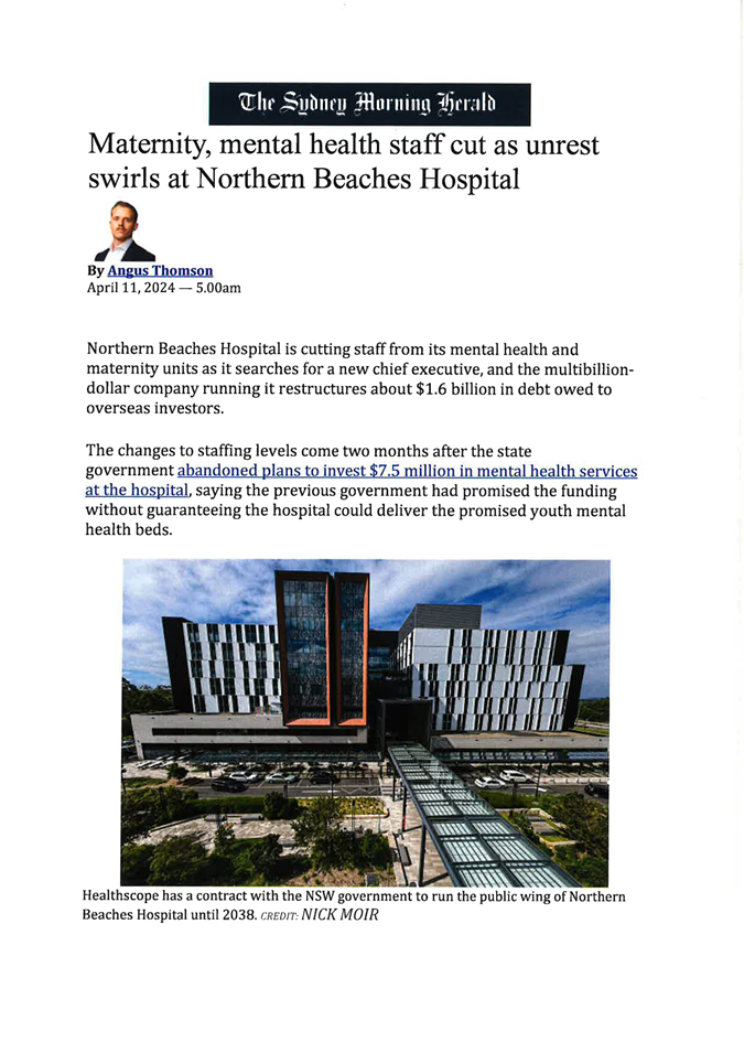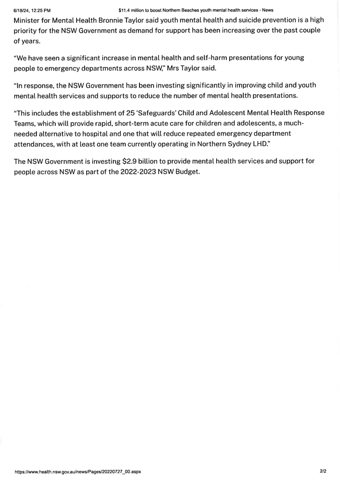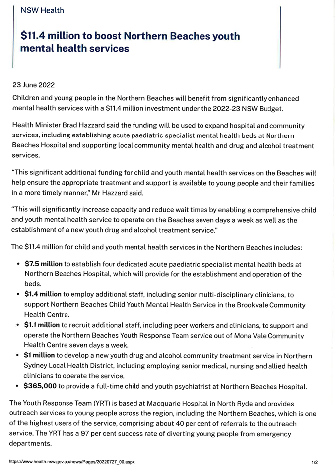 14.7 Notice of Motion No 26/2024 - Youth Mental Health Facilities and Services on the Northern Beaches