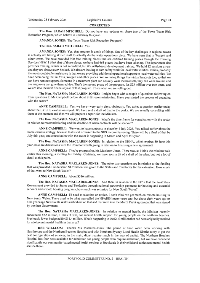 Attachment 1: Letter Hon Courtney Houssos MLC, Minister for Finance.................. 1076