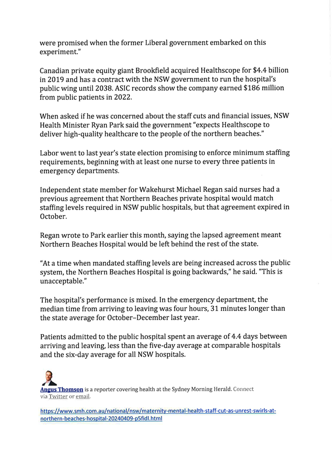 Attachment 1 : Letter Hon Courtney Houssos MLC, Minister for Finance - ITEM 12.5 - northern beaches council meeting - 25 June 2024