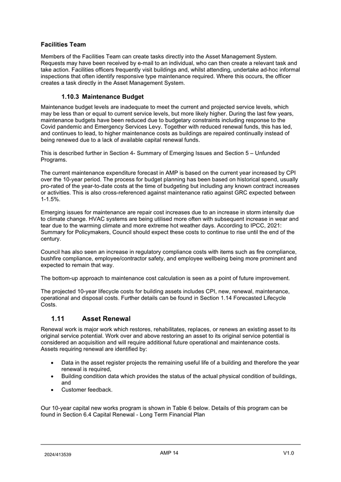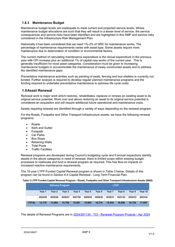 Attachment 6: Revised Asset Management Plans 2024-2034..................................... 427
