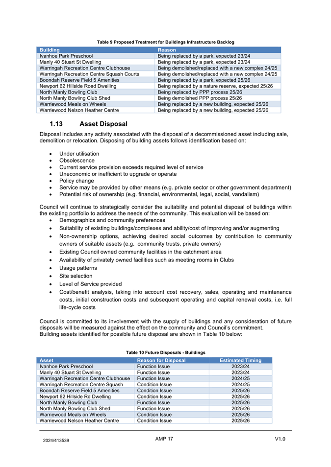 Attachment 6 : Revised Asset Management Plans 2024-2034 - ITEM 9.1 - Northern Beaches Council Meeting - 25 June 2024
