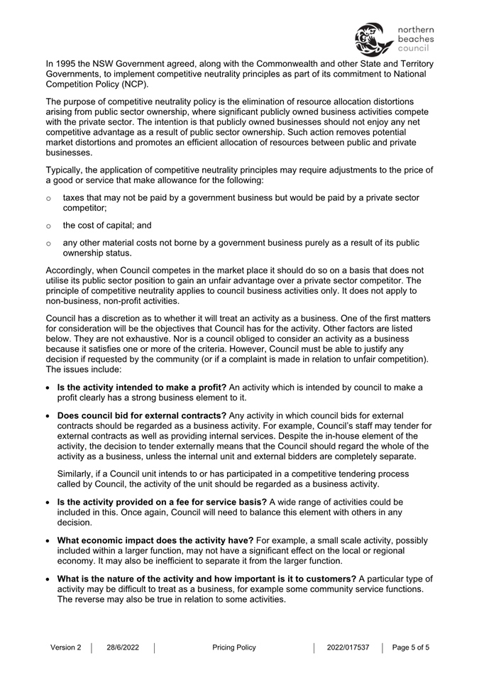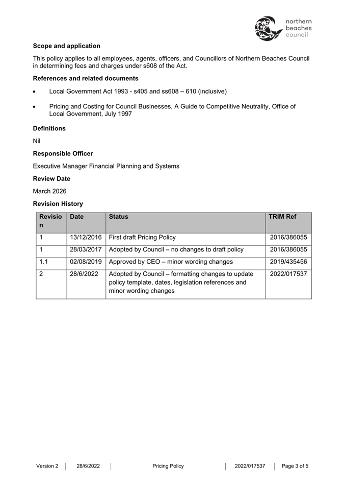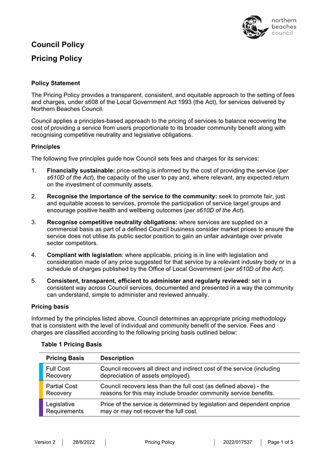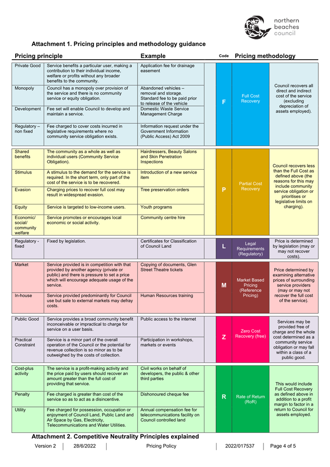 Attachment 4 : Revised Fees and Charges including Pricing Methodology 2024/25 - ITEM 9.1 - Northern Beaches Council Meeting - 25 June 2024