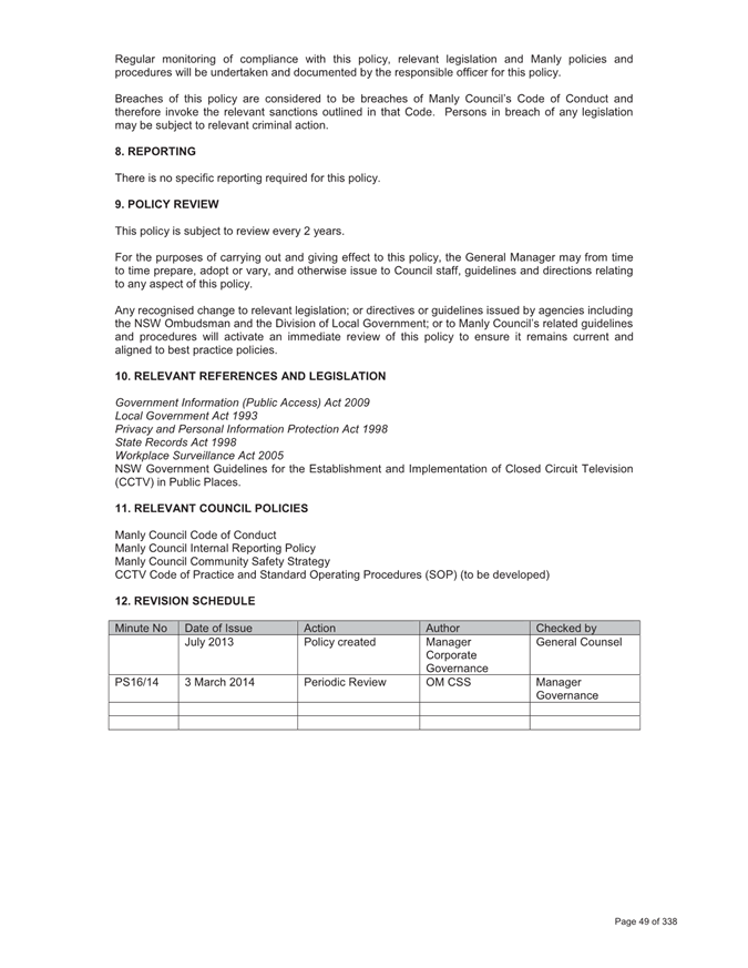 Attachment 1 : Former Manly Council - Closed Circuit Television (CCTV) on Public Land Policy - ITEM 9.3 - northern beaches council meeting - 25 June 2024