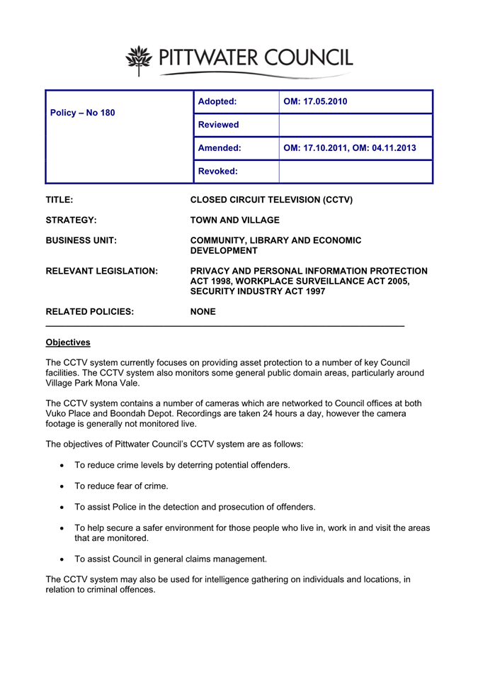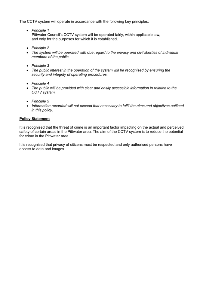 Attachment 2: Former Pittwater Council - Closed Circuit Television (CCTV) Policy... 717