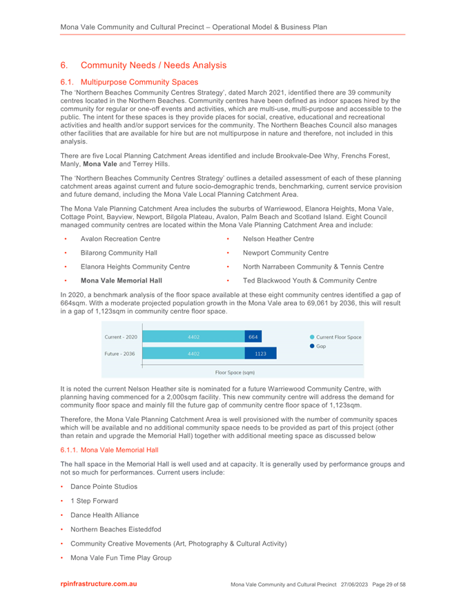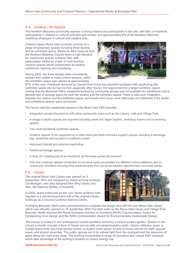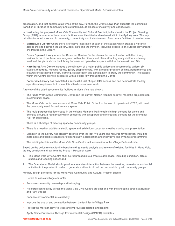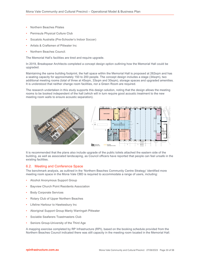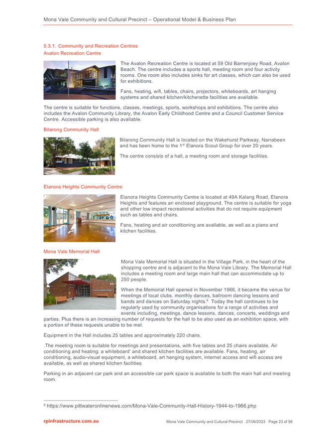 Attachment 1: Mona Vale Community & Cultural Precinct - Operational Model and Business Plan - Final Report................................................................................. 720