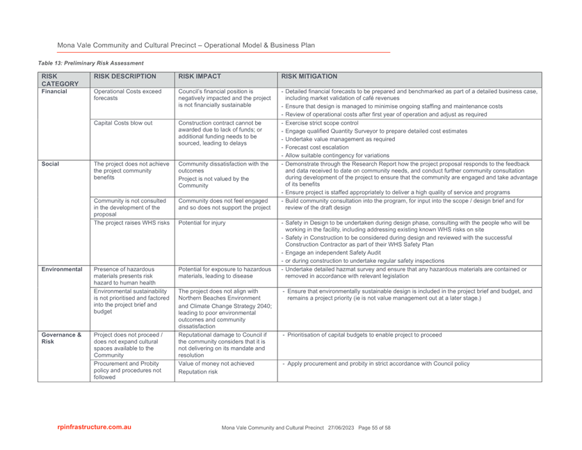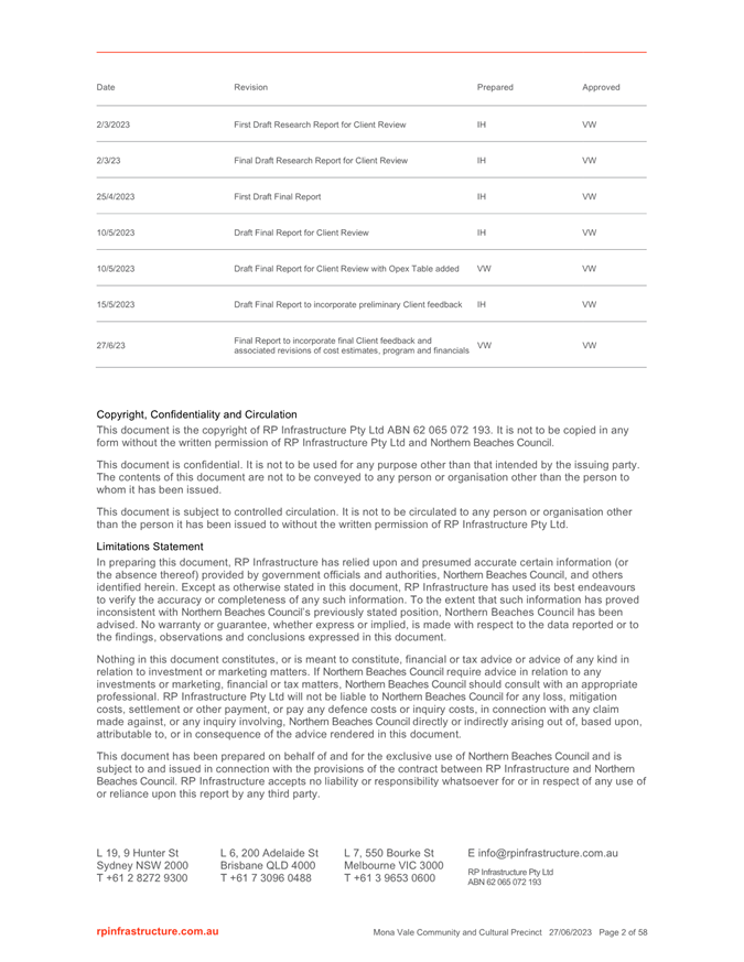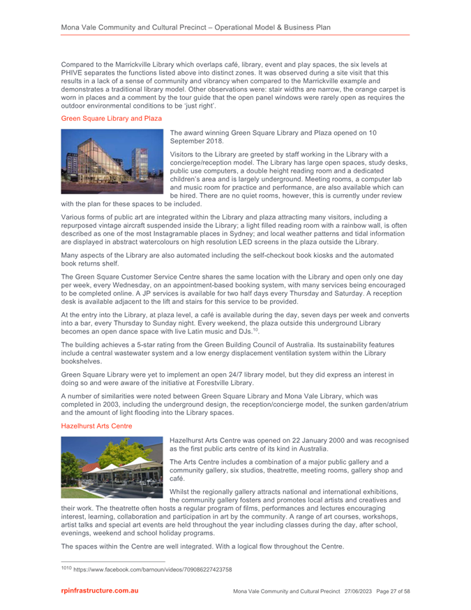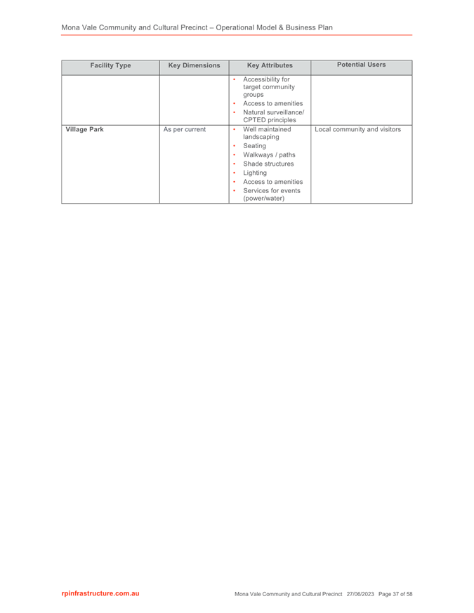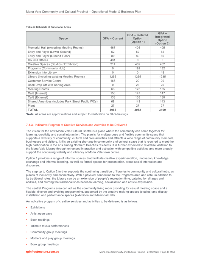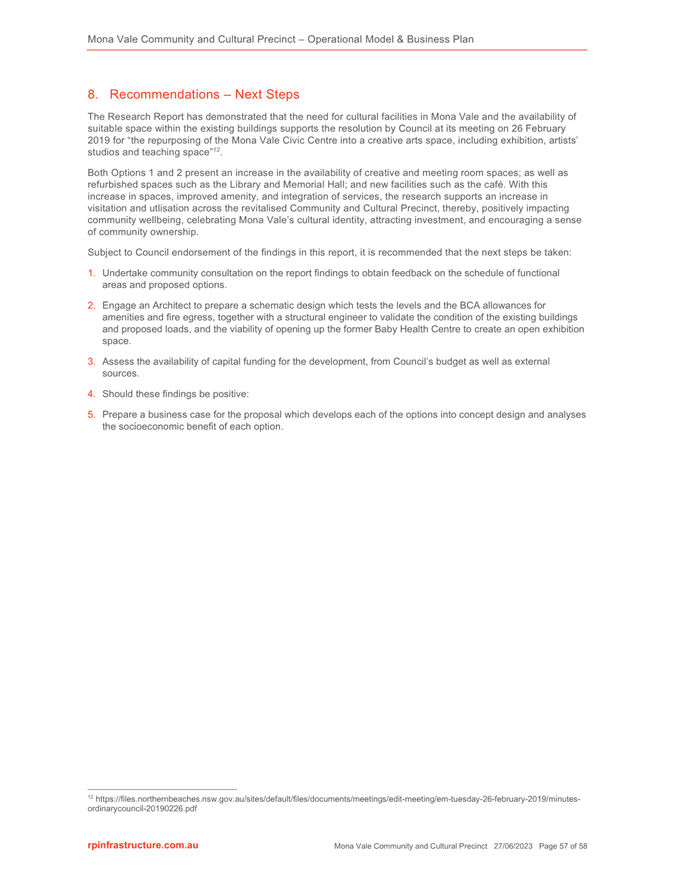 Attachment 1: Mona Vale Community & Cultural Precinct - Operational Model and Business Plan - Final Report................................................................................. 720