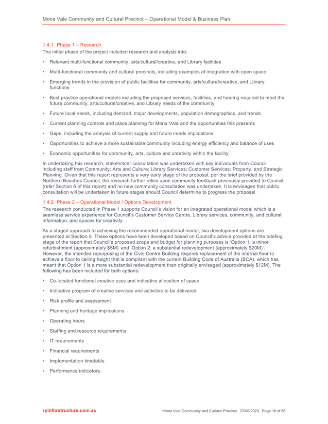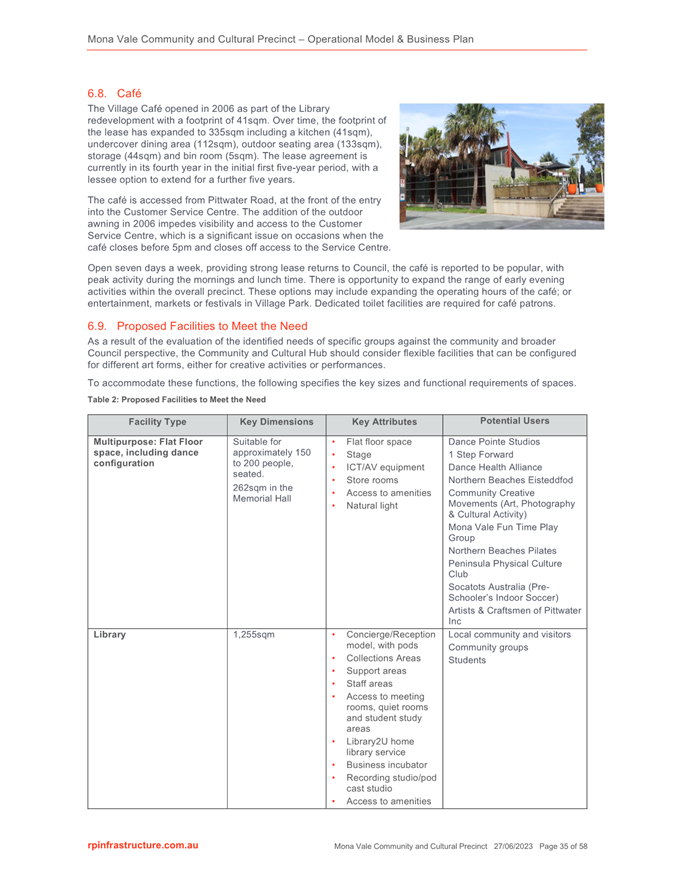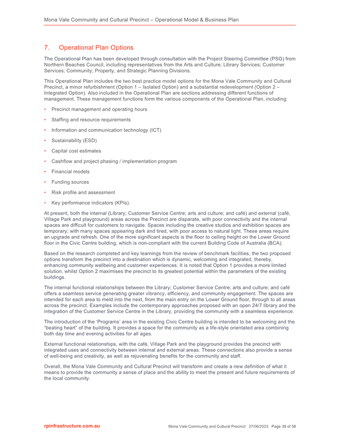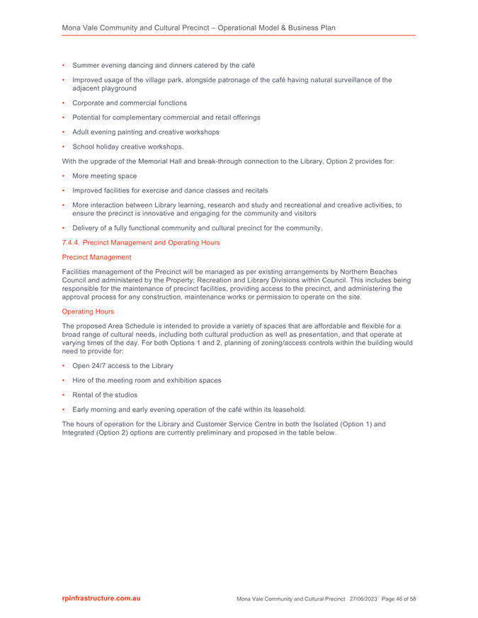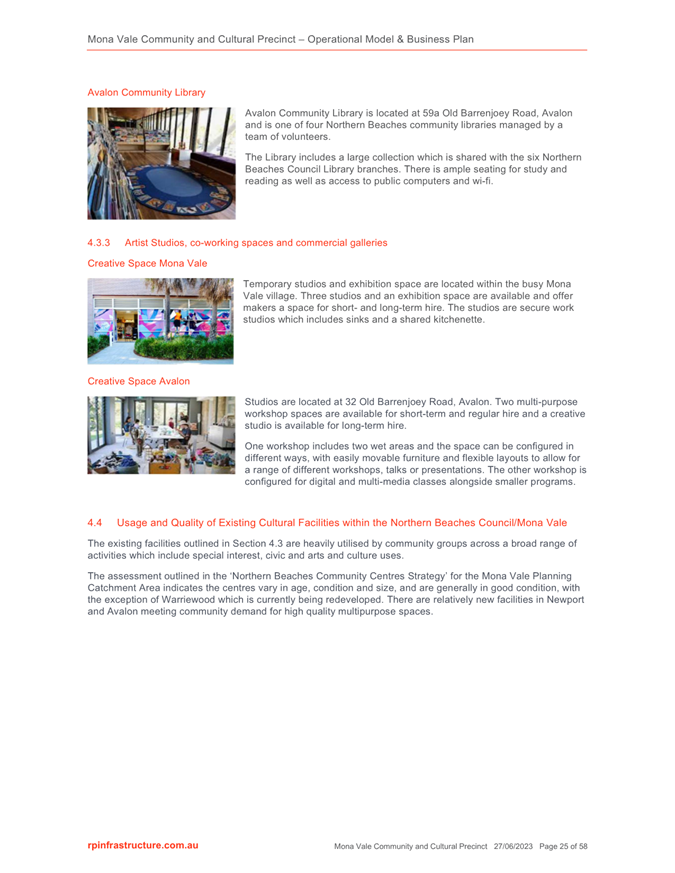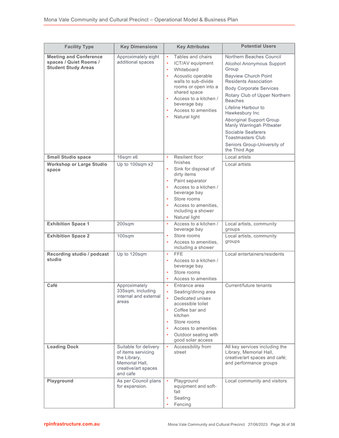 Attachment 1 : Mona Vale Community & Cultural Precinct - Operational Model and Business Plan - Final Report - ITEM 10.1 - northern beaches council meeting - 25 June 2024