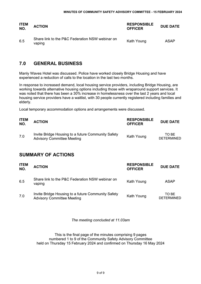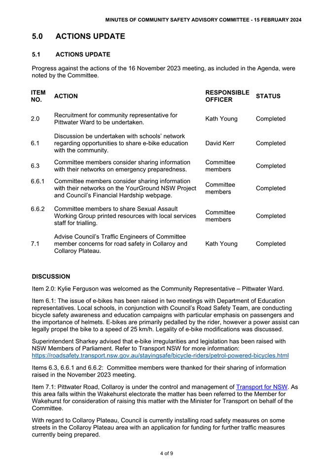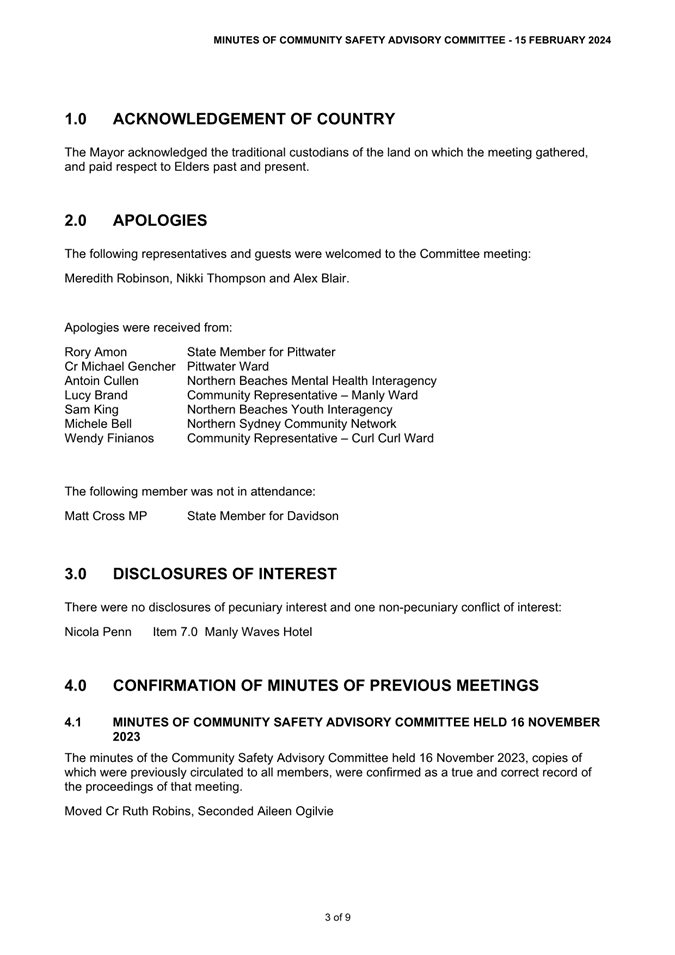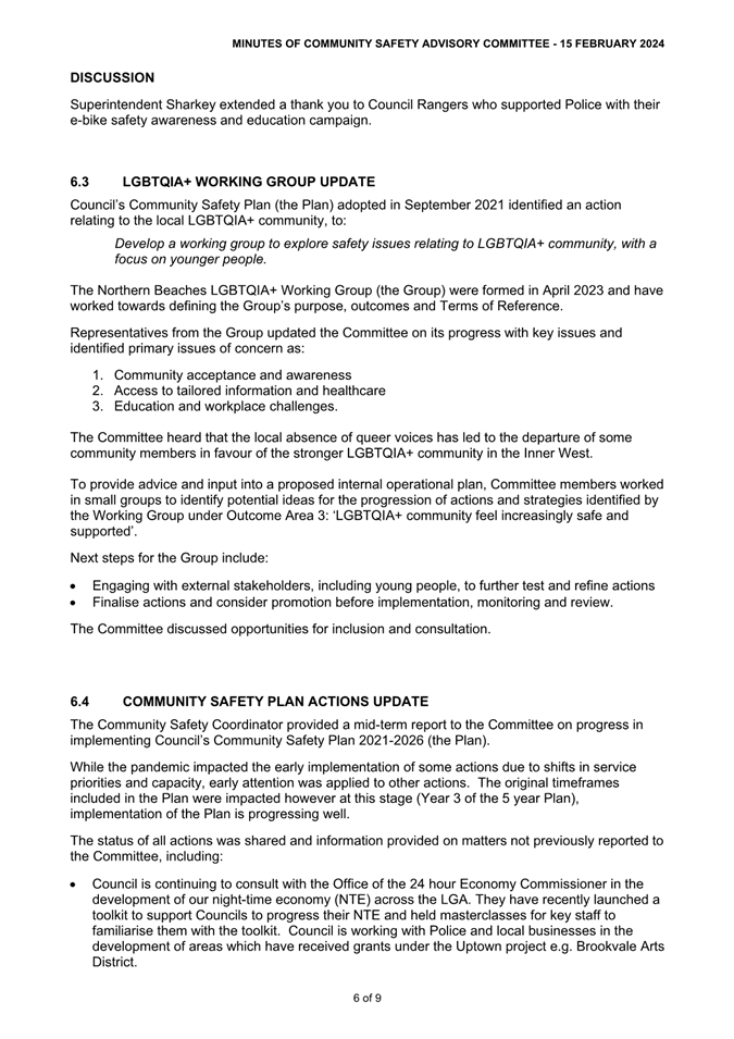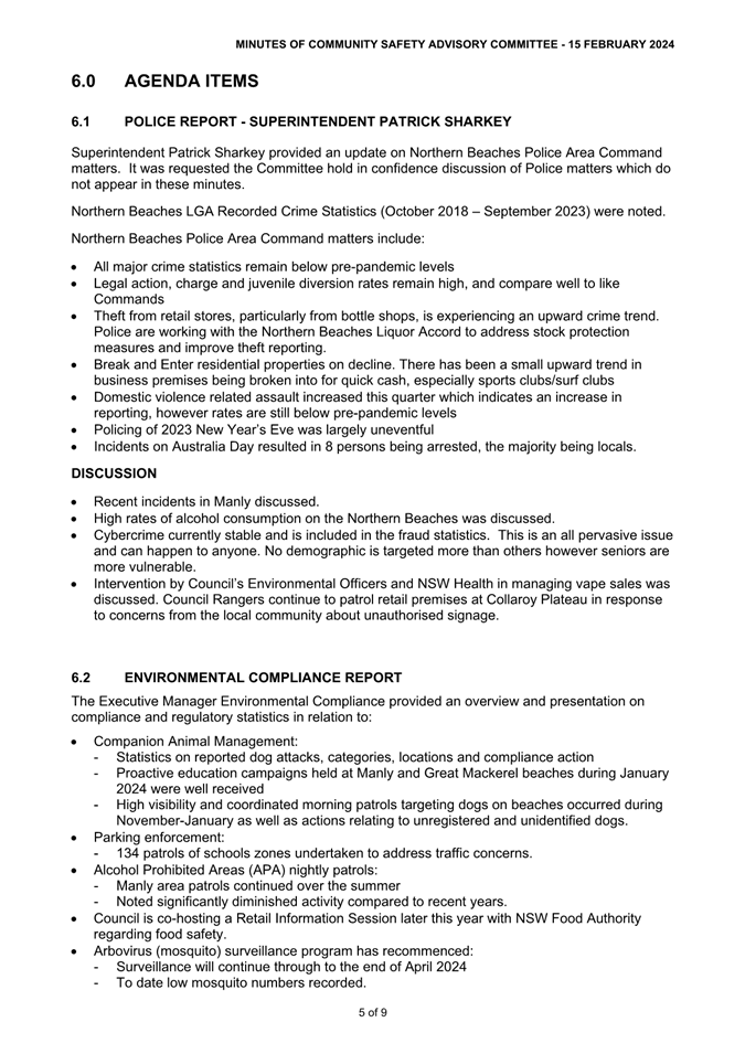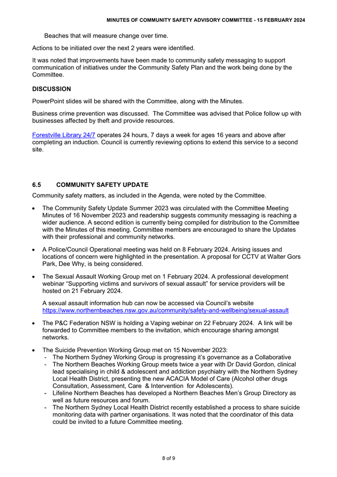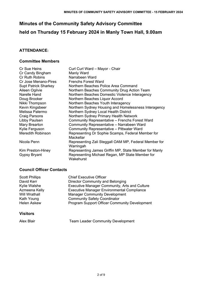 Attachment 1 : Minutes - Community Safety Advisory Committee - 15 February 2024 - ITEM 10.2 - northern beaches council meeting - 25 June 2024