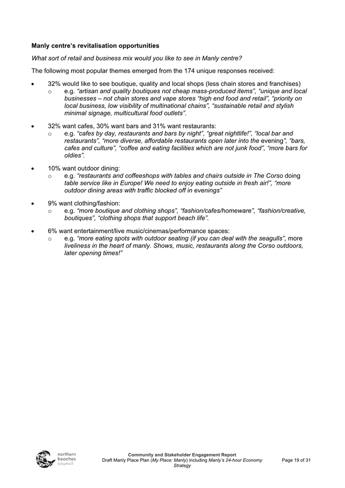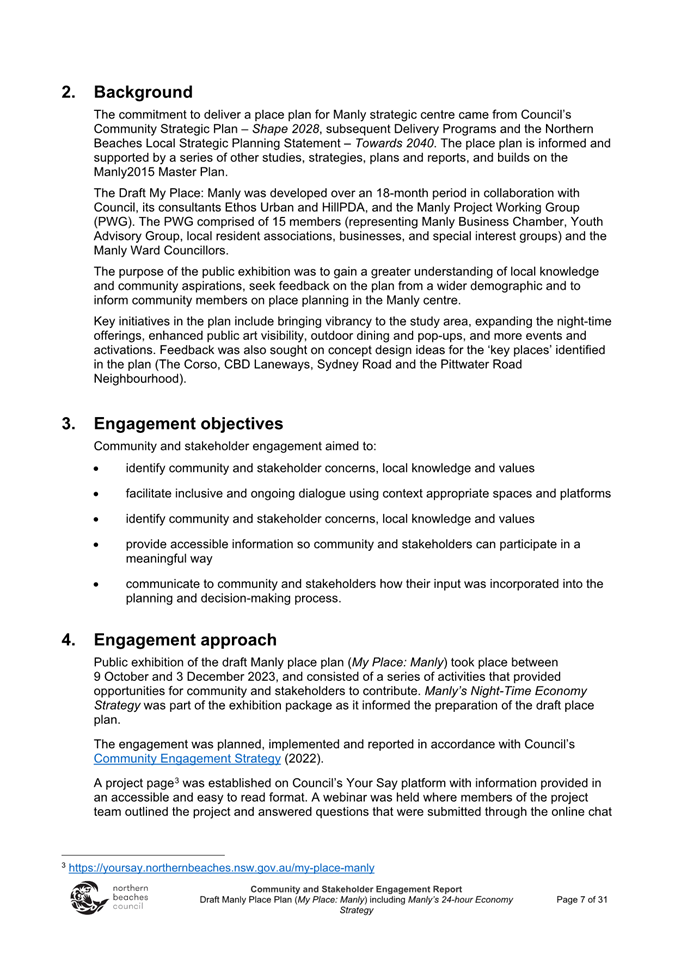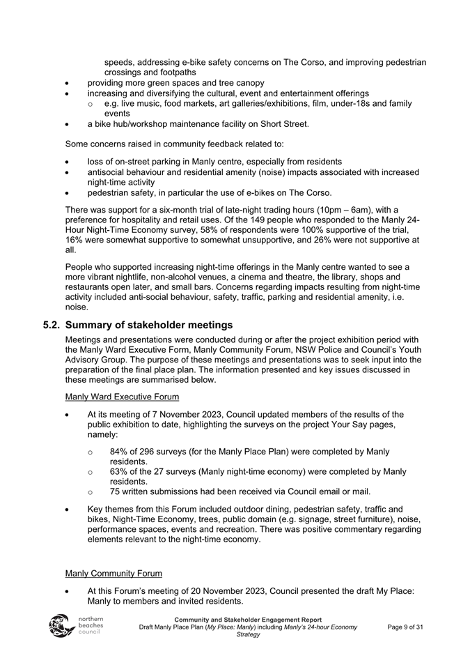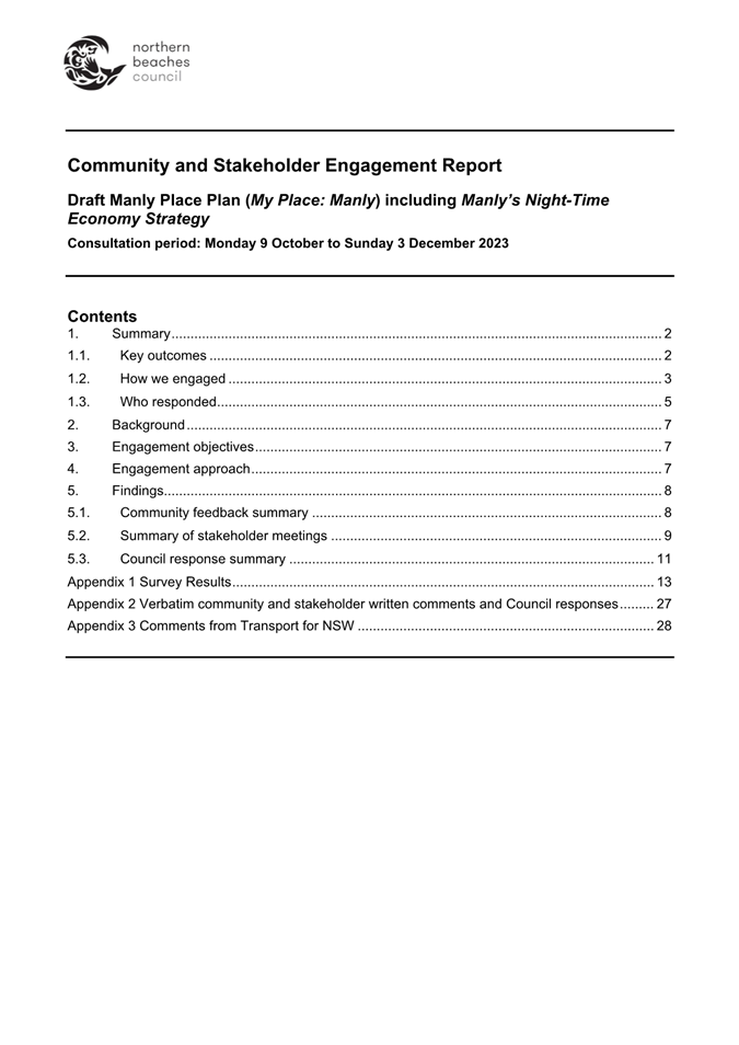 Attachment 2 : Community Engagement Report - My Place:Manly - ITEM 12.1 - northern beaches council meeting - 25 June 2024