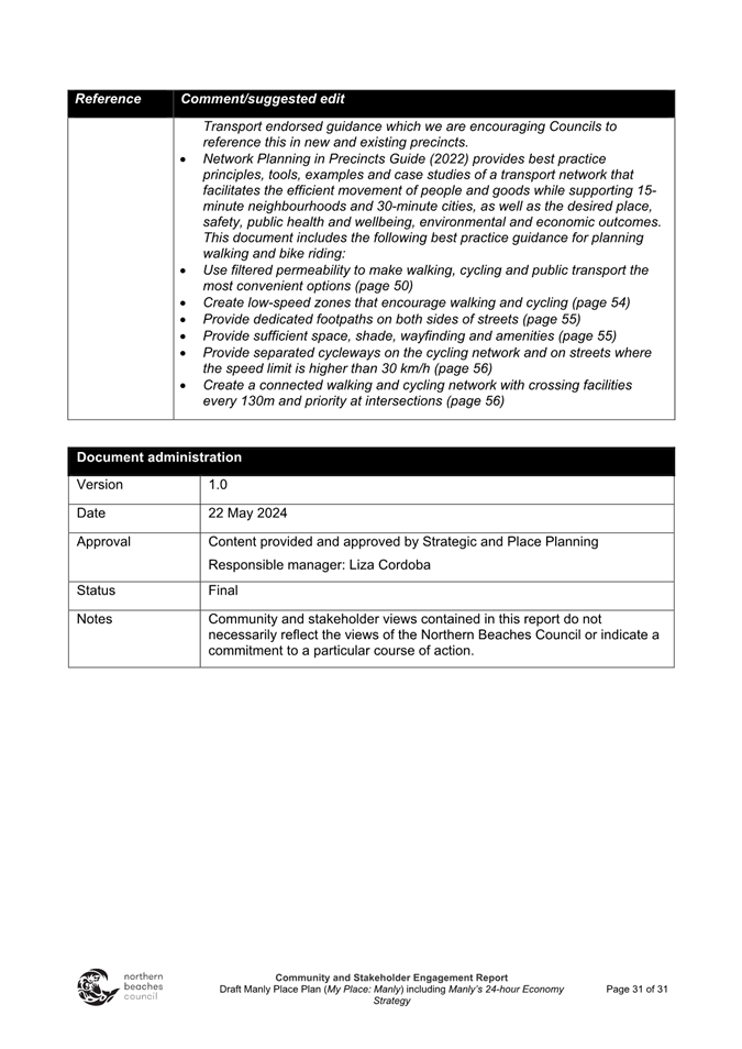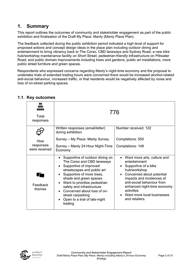 Attachment 2: Community Engagement Report - My Place:Manly.............................. 930