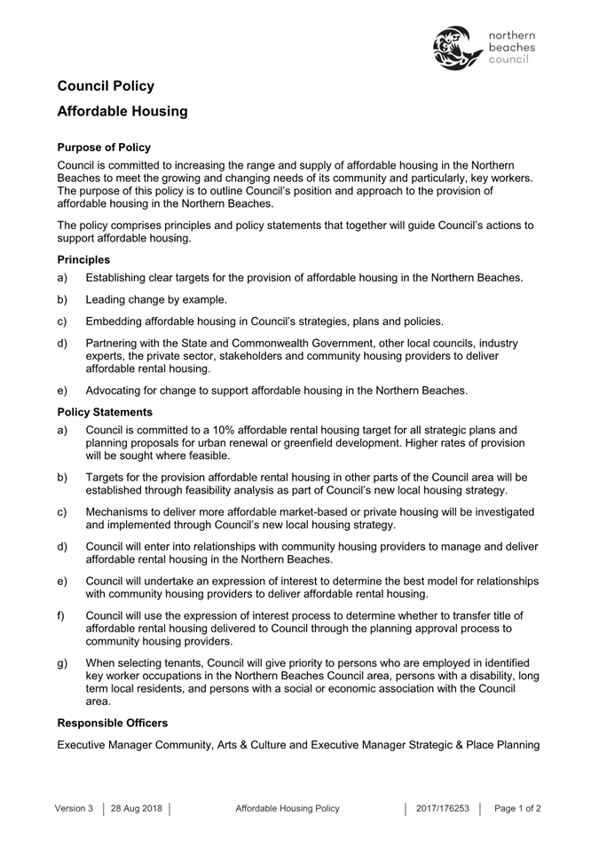 Attachment 1 : Affordable Housing Policy - ITEM 12.3 - northern beaches council meeting - 25 June 2024