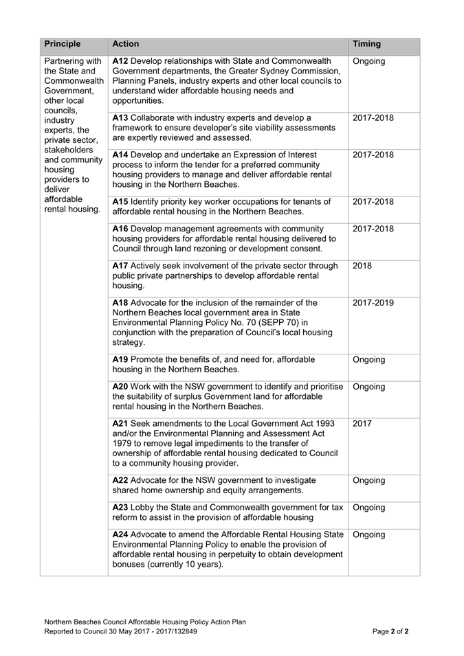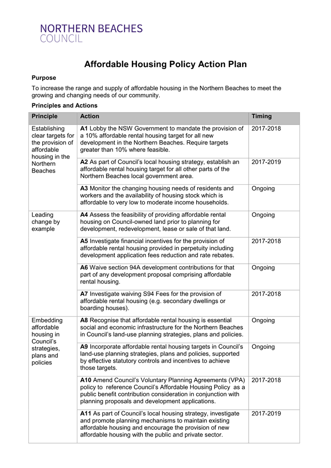 Attachment 2 : Affordable Housing Policy Action Plan - ITEM 12.3 - northern beaches council meeting - 25 June 2024