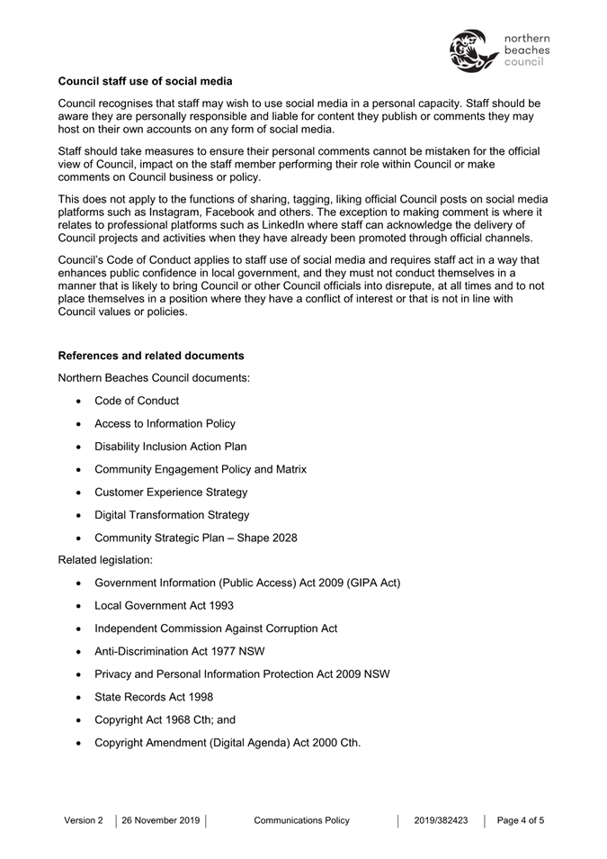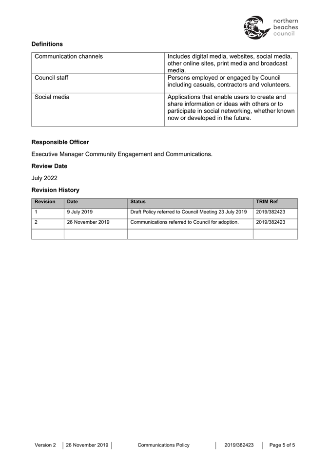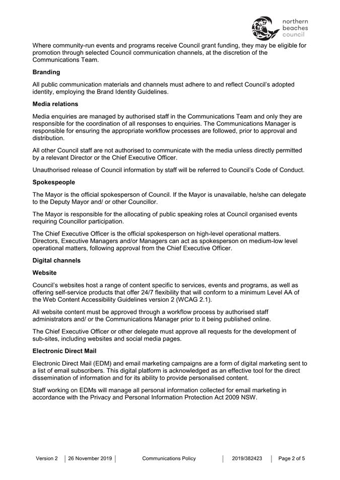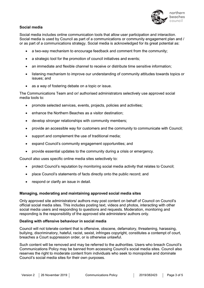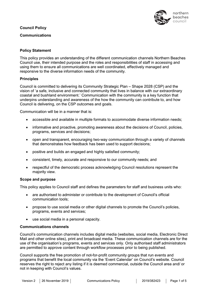 Attachment 1 : Communications Policy - November 2019 - for revoking - ITEM 8.1 - Northern Beaches Council Meeting - 17 February 2026
