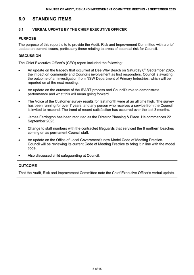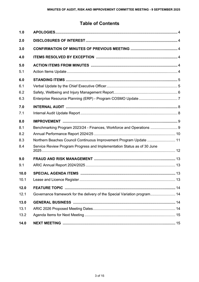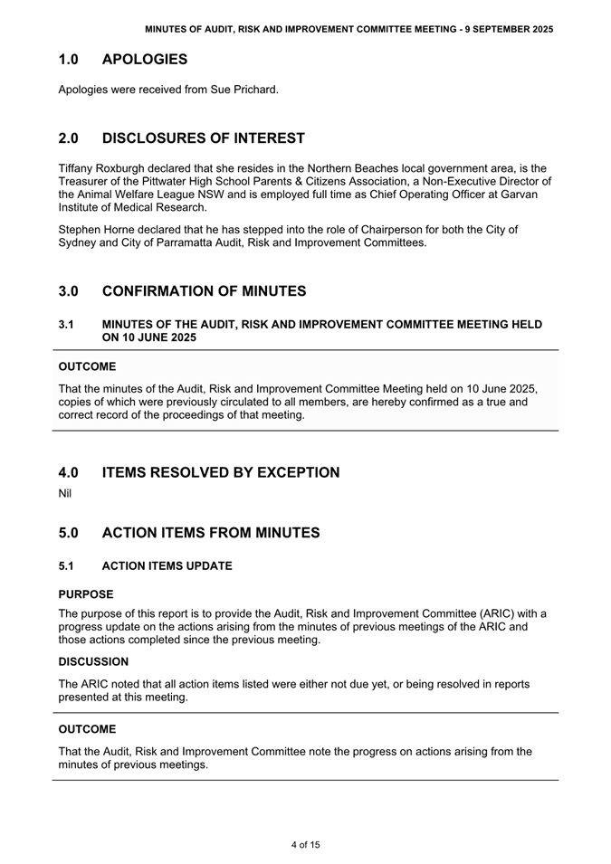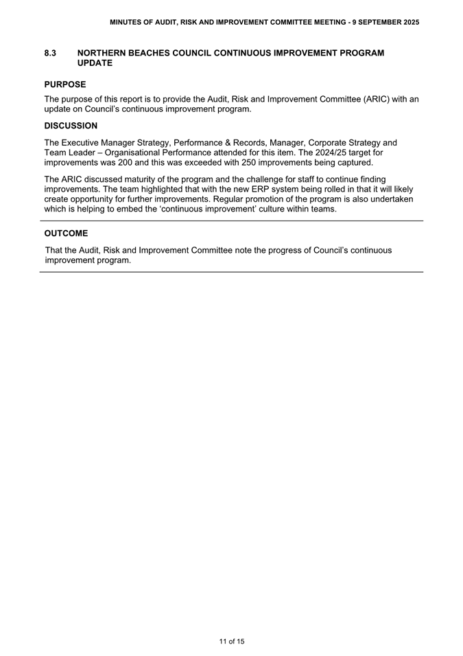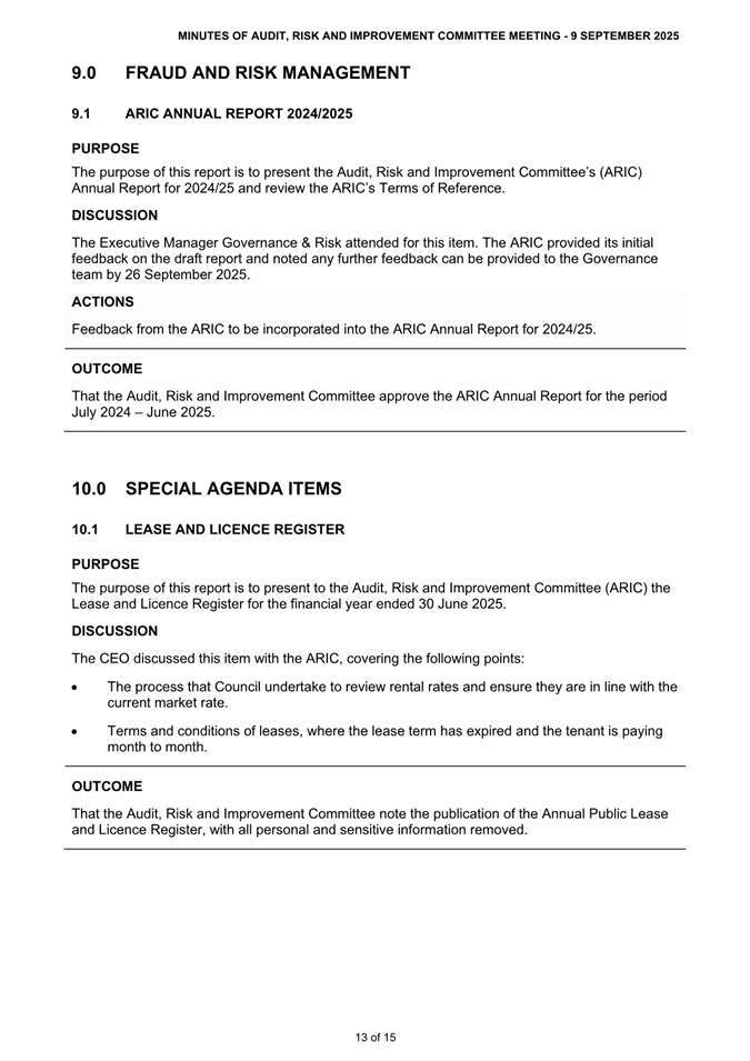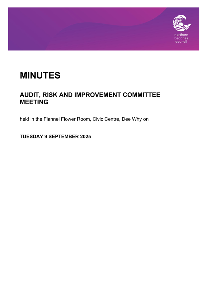 Attachment 1 : ARIC Minutes - Ordinary 9 September 2025 - ITEM 8.2 - Northern Beaches Council Meeting - 17 February 2026