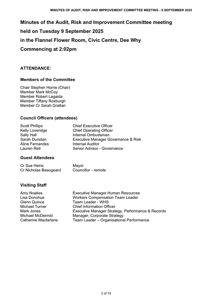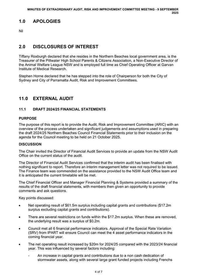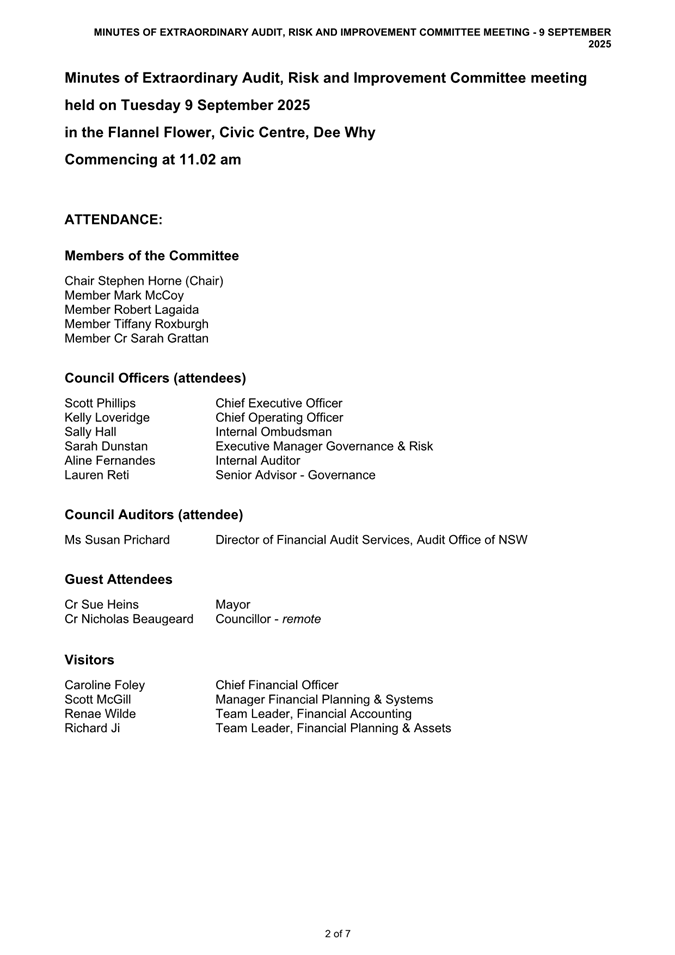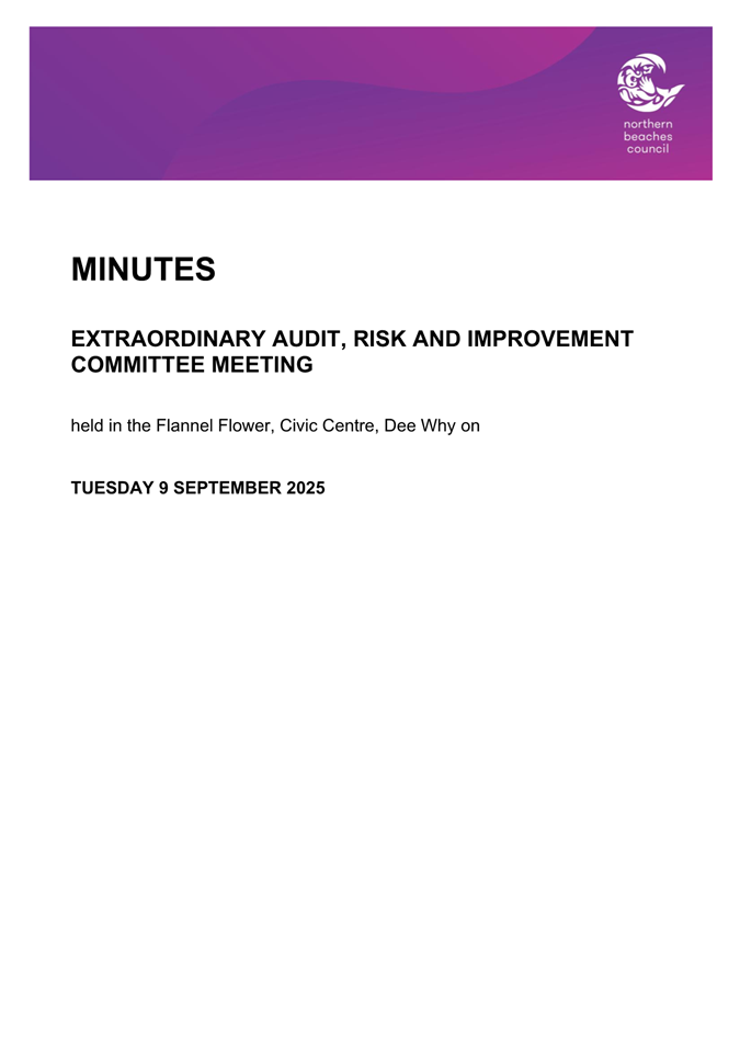 Attachment 2 : ARIC Minutes - Extraordinary 9 September 2025 - ITEM 8.2 - Northern Beaches Council Meeting - 17 February 2026