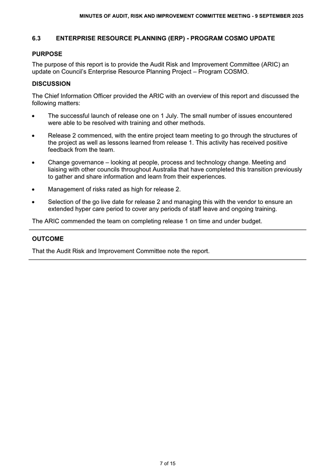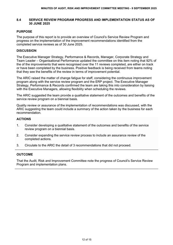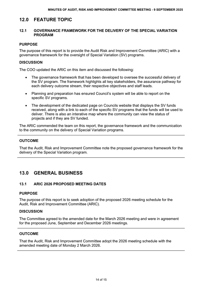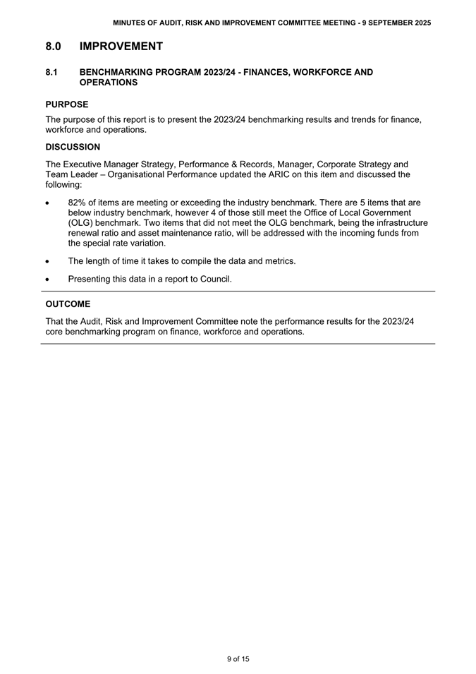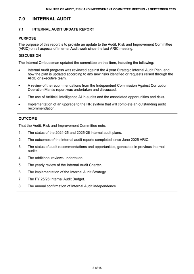 Attachment 1: ARIC Minutes - Ordinary 9 September 2025............................................ 8