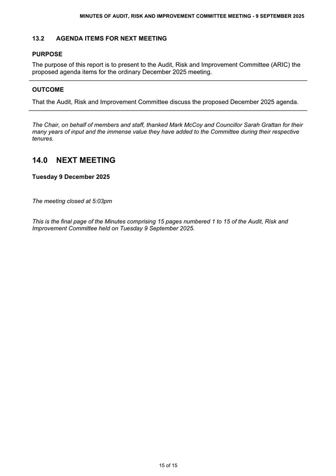 8.2 Audit Risk and Improvement Committee Confirmed Minutes - September 2025