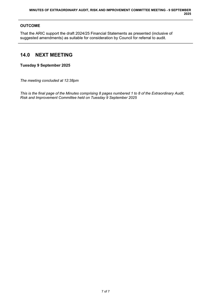 Attachment 2: ARIC Minutes - Extraordinary 9 September 2025................................... 23