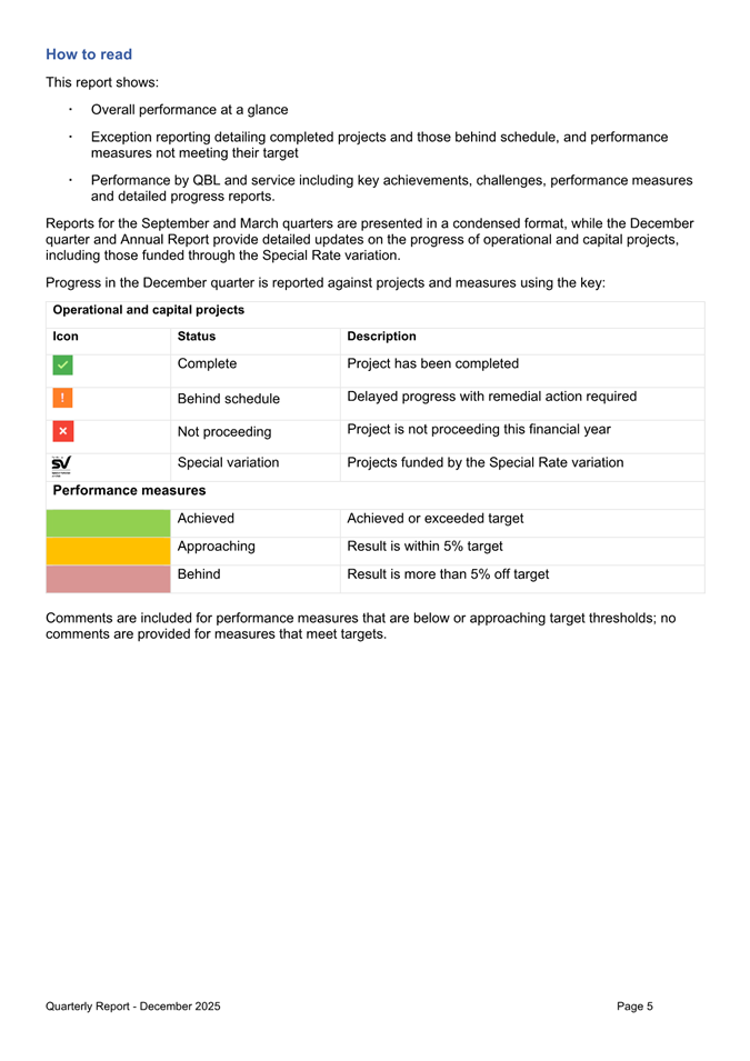 Attachment 1: Quarterly Report on Service Performance - December 2025................. 30