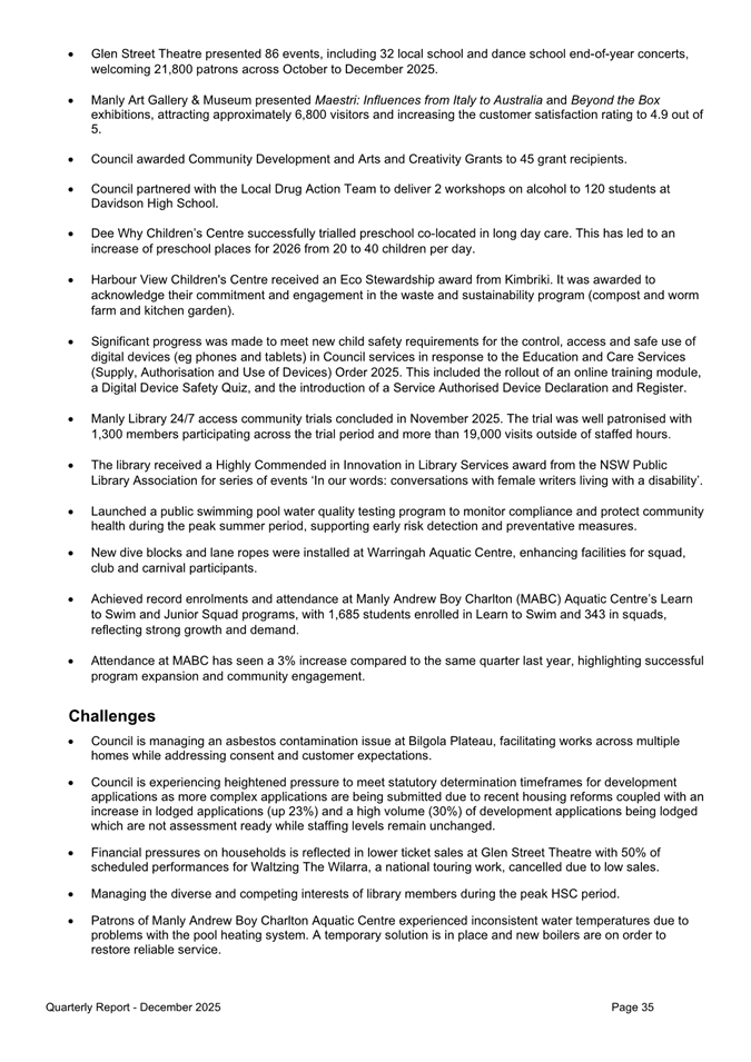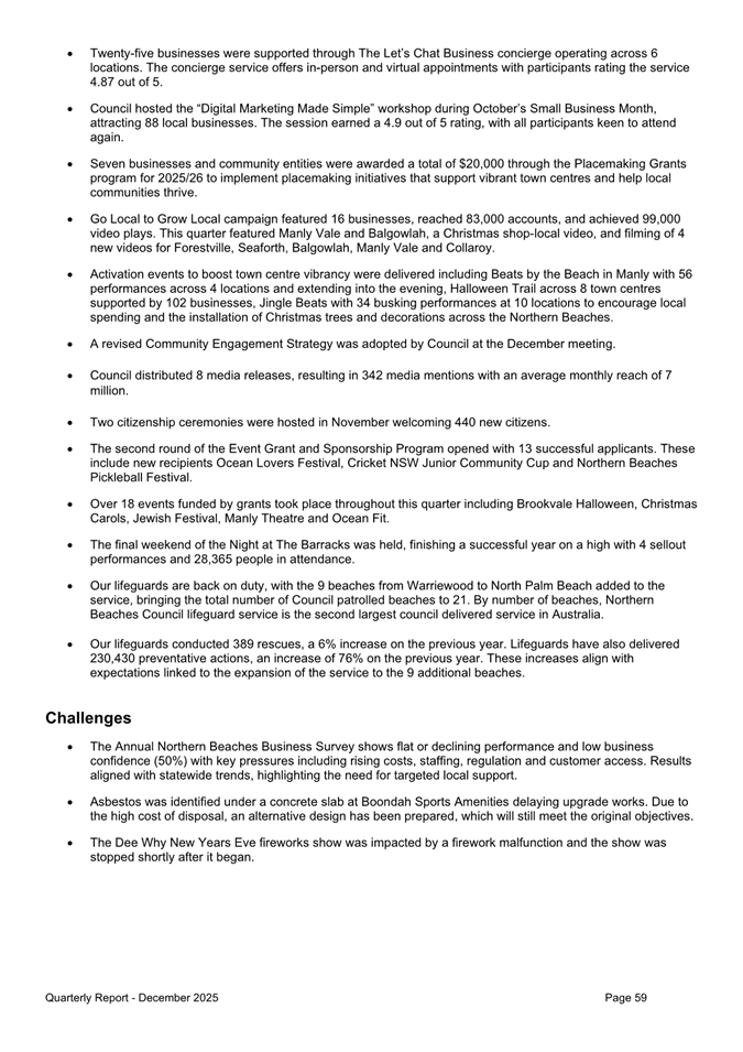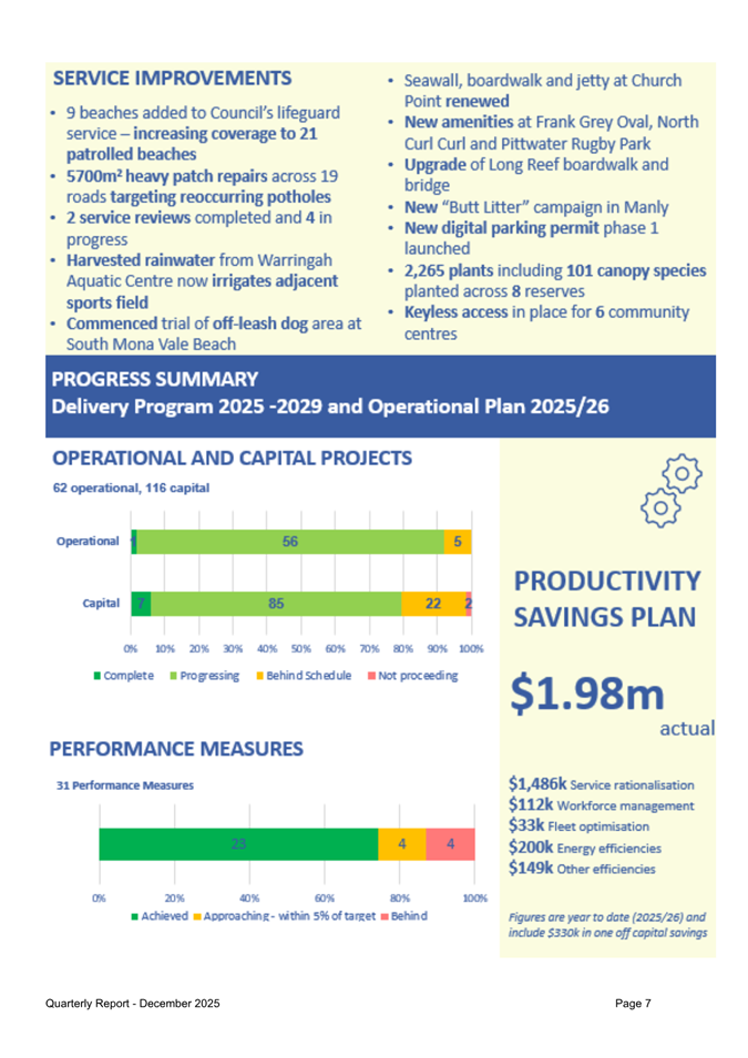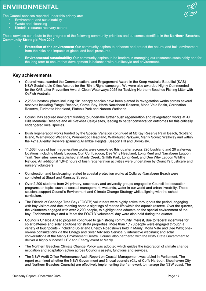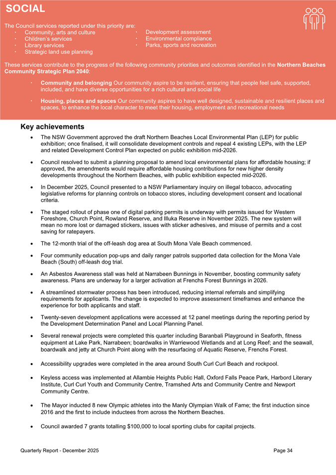 Attachment 1 : Quarterly Report on Service Performance - December 2025 - ITEM 8.3 - Northern Beaches Council Meeting - 17 February 2026