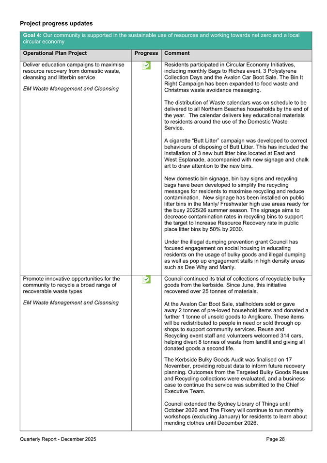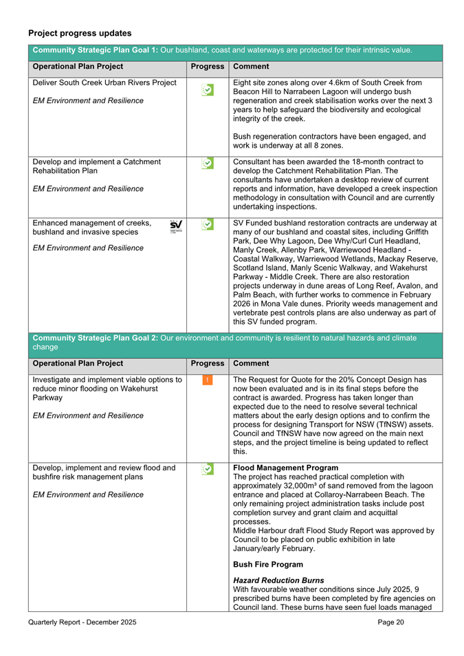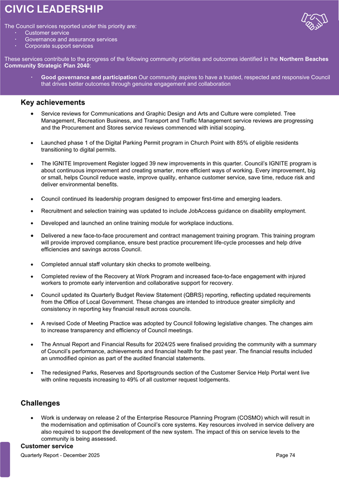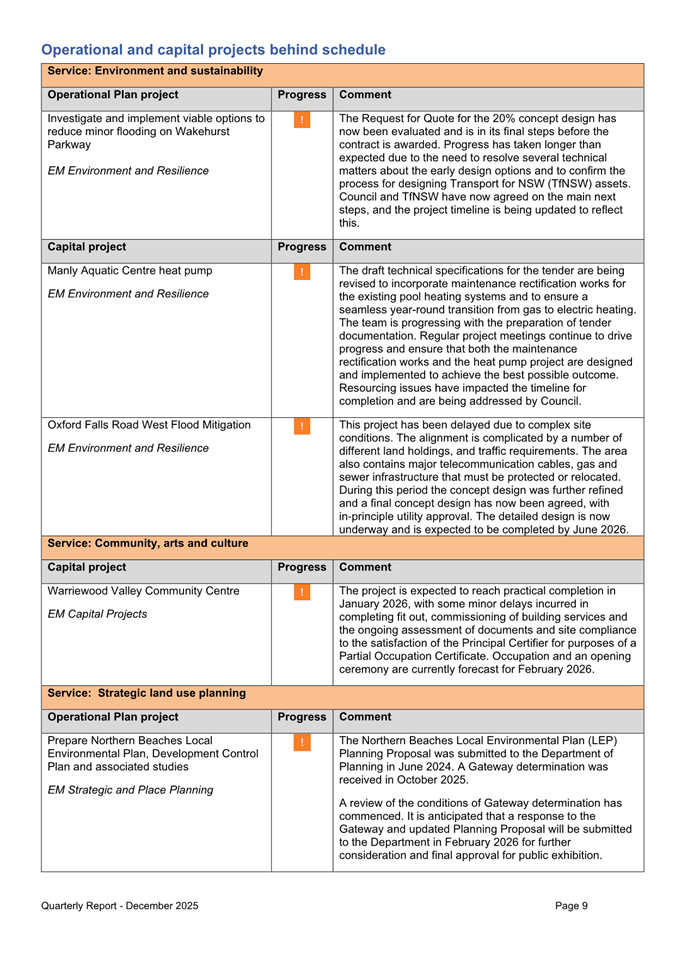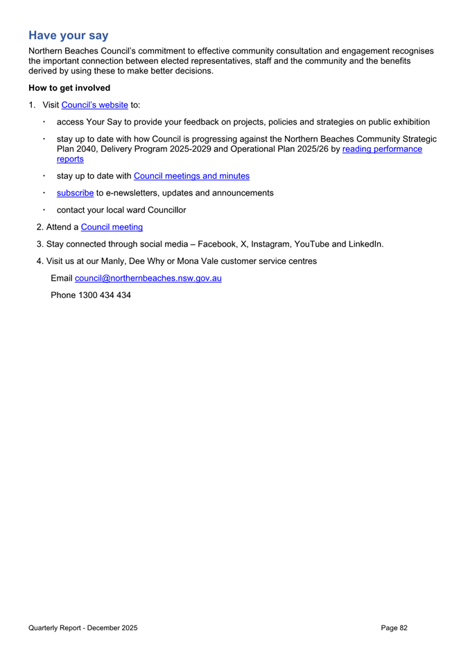 Attachment 1 : Quarterly Report on Service Performance - December 2025 - ITEM 8.3 - Northern Beaches Council Meeting - 17 February 2026