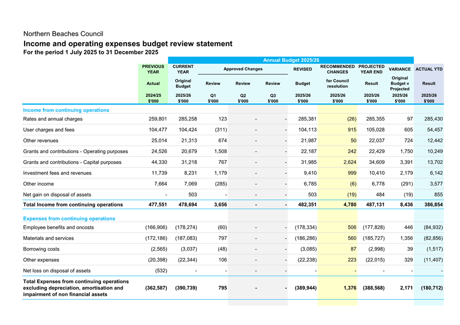 Attachment 2 : Quarterly Budget Review Statement - December 2025 - ITEM 8.3 - Northern Beaches Council Meeting - 17 February 2026