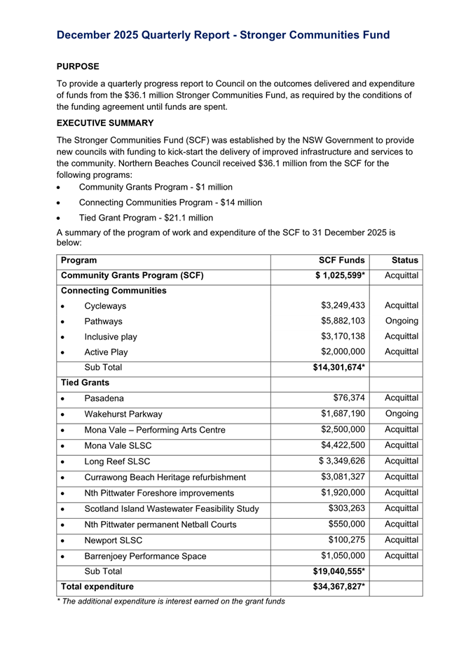 Attachment 3 : Stronger Communities Funds - December 2025 - ITEM 8.3 - Northern Beaches Council Meeting - 17 February 2026