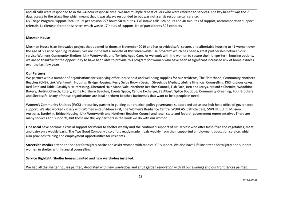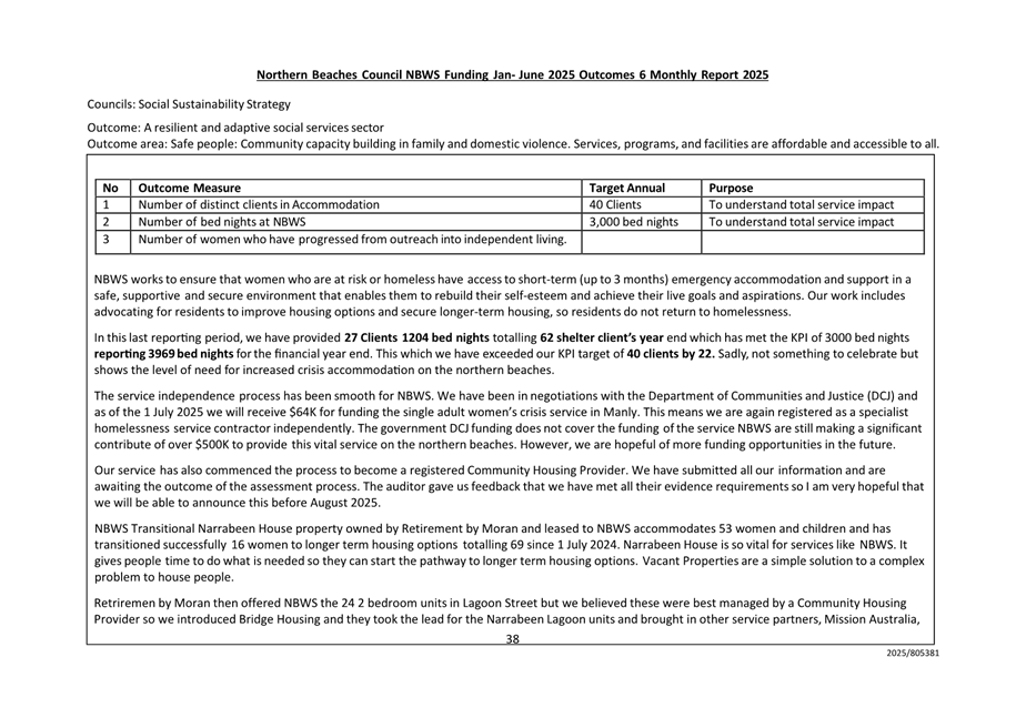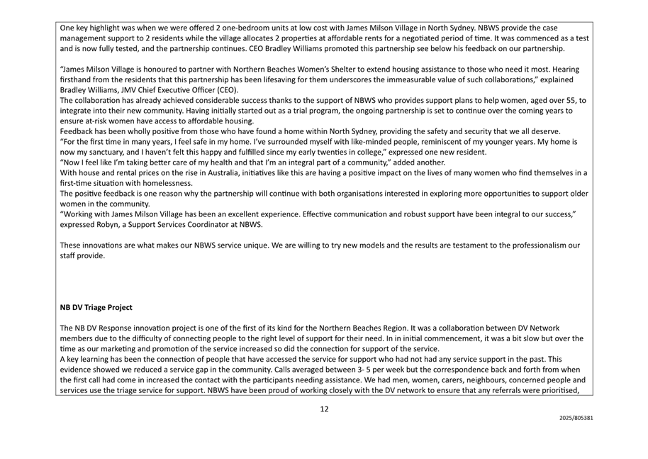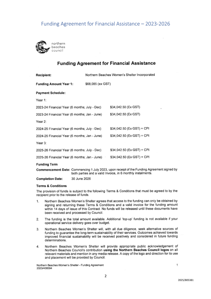9.1 Financial Assistance - Northern Beaches Women's Shelter