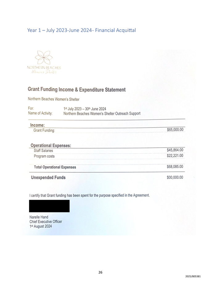 Attachment 1 : Outcome Reports & Financial Acquittals 2023-2025 - ITEM 9.1 - Northern Beaches Council Meeting - 17 February 2026