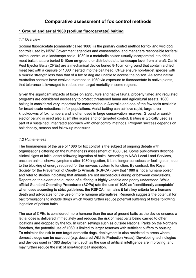 Attachment 1 : Comparative Assessment of Fox Control Methods - ITEM 10.2 - Northern Beaches Council Meeting - 17 February 2026