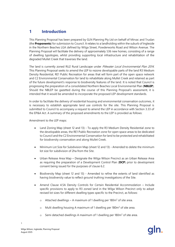 Attachment 1 : Planning Proposal submitted by GLN Planning - ITEM 11.1 - Northern Beaches Council Meeting - 17 February 2026