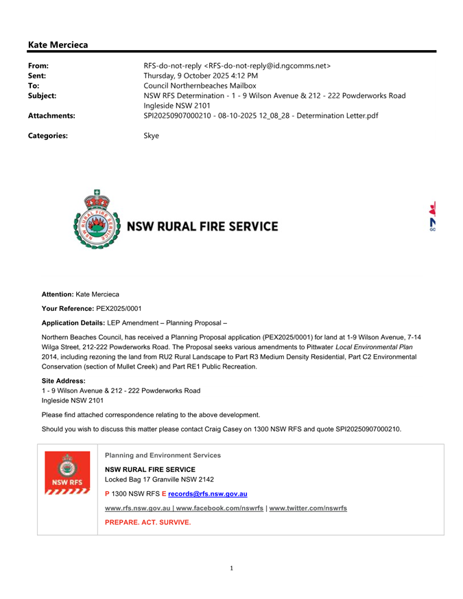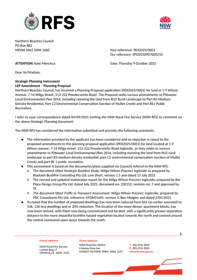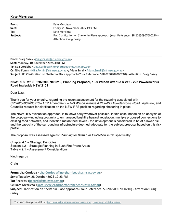 Attachment 1: Fire & Rescue NSW Inspection Report dated 8 September 2025 - Pittwater Road Brookvale..................................................................................... 648