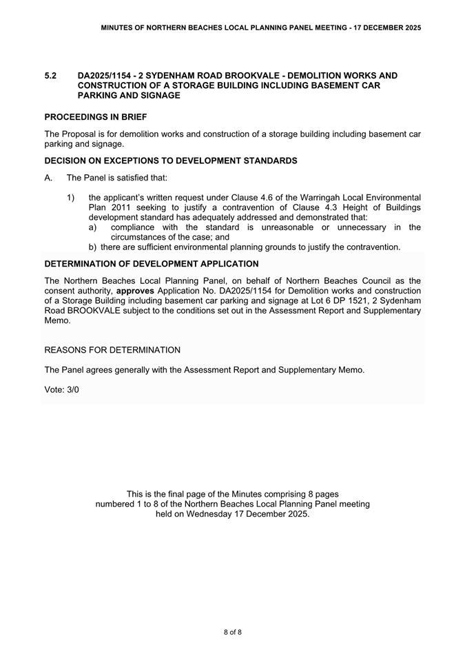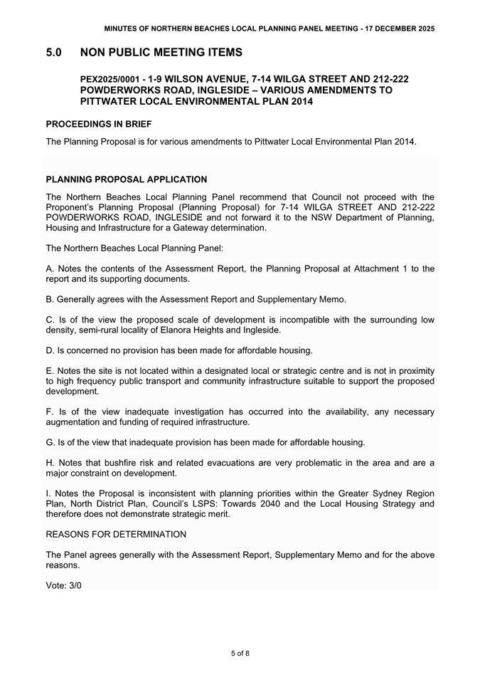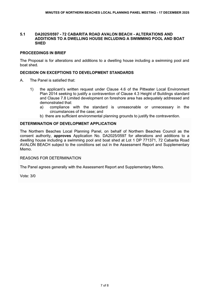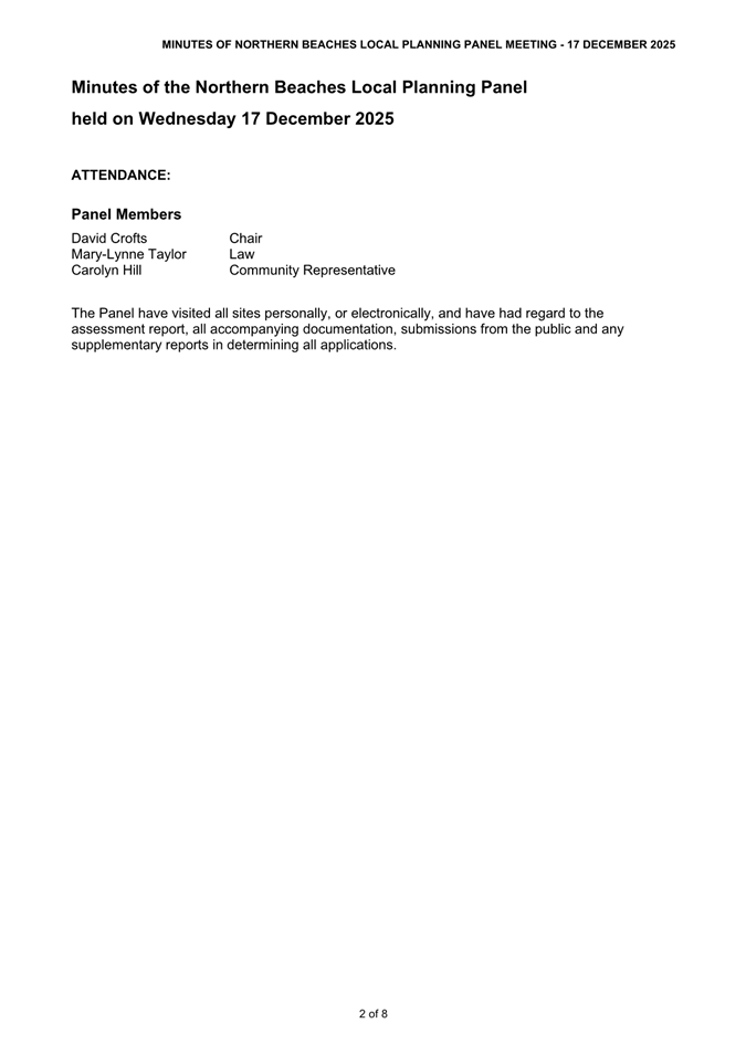 Attachment 3 : Northern Beaches Local Planning Panel MInutes - ITEM 11.2 - Northern Beaches Council Meeting - 17 February 2026