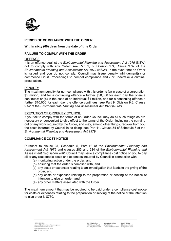 Attachment 2 : Notice of Intention to give an Order dated 23 October 2025 - Pittwater Road Brookvale - ITEM 11.4 - Northern Beaches Council Meeting - 17 February 2026