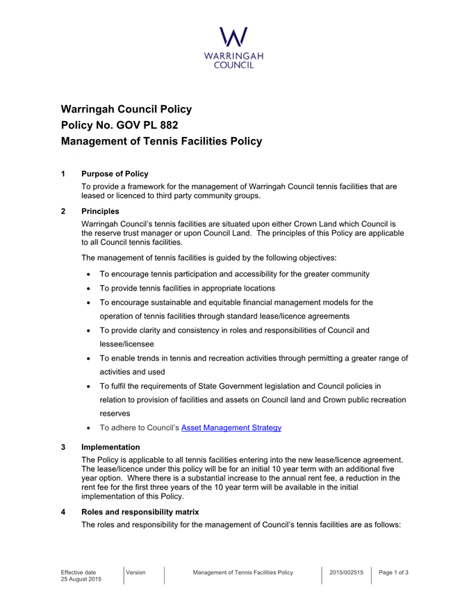Attachment 2 : Management of Tennis Facilities Policy - ITEM 12.1 - Northern Beaches Council Meeting - 17 February 2026