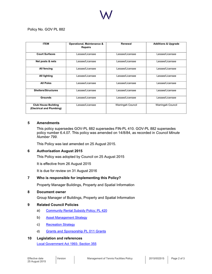 Attachment 1: Tennis Liaison Committee (Policy No 101)........................................... 656