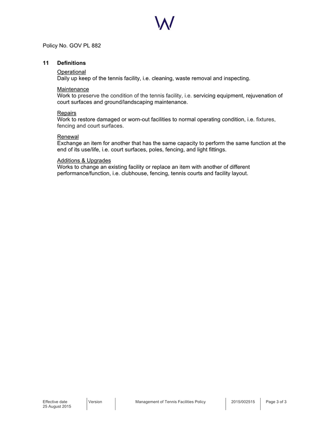 Attachment 2: Management of Tennis Facilities Policy................................................ 658