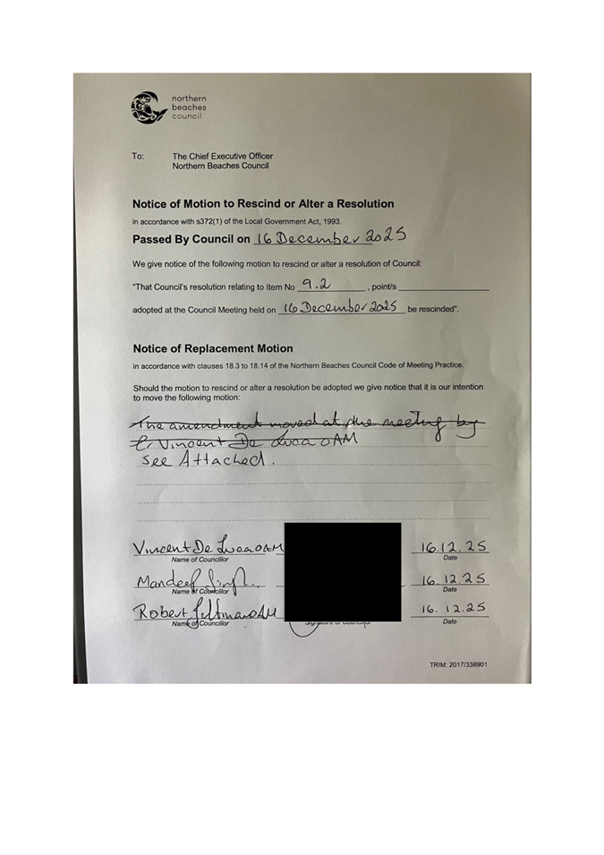 Attachment 1 : Notice of Rescission - ITEM 14.1 - Northern Beaches Council Meeting - 17 February 2026