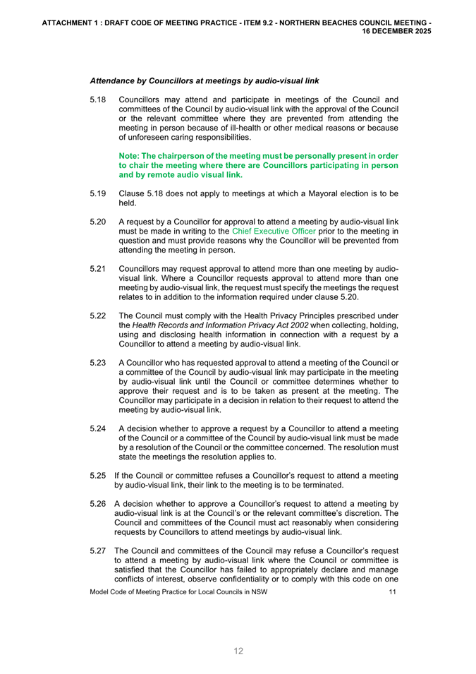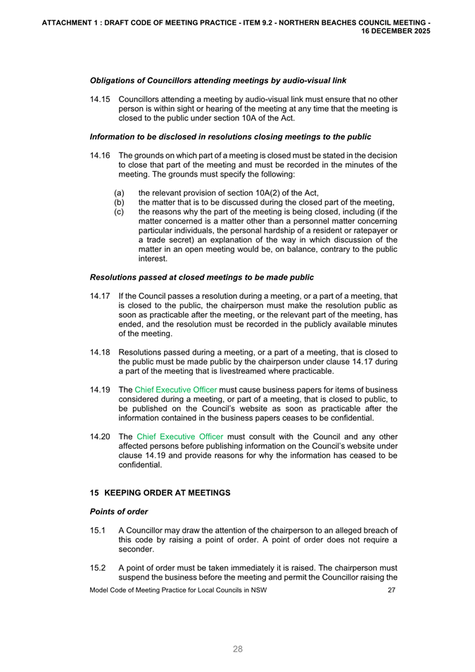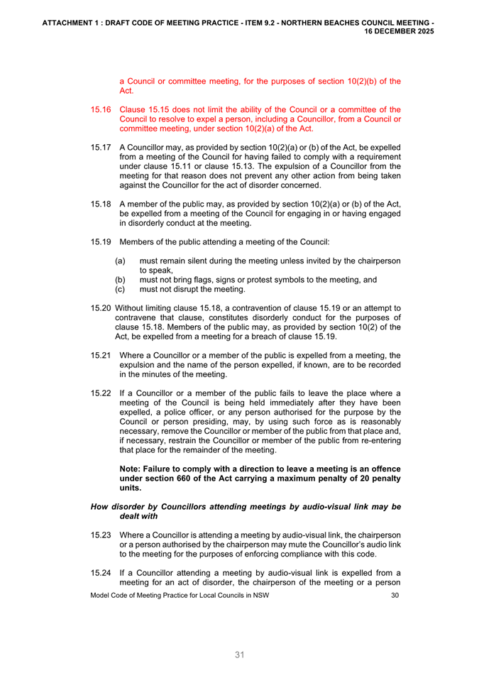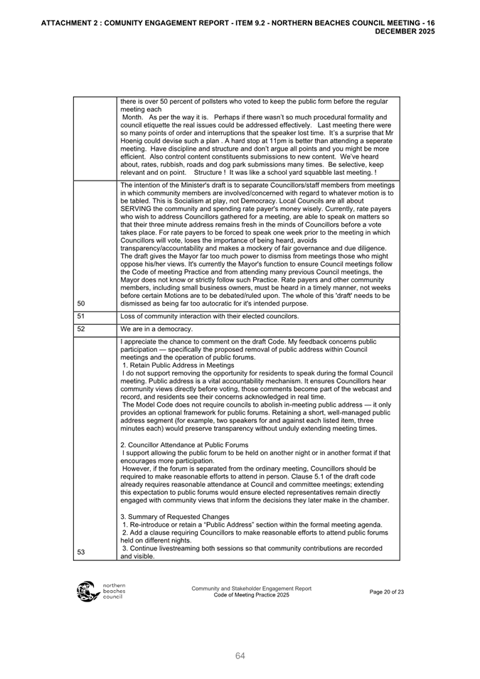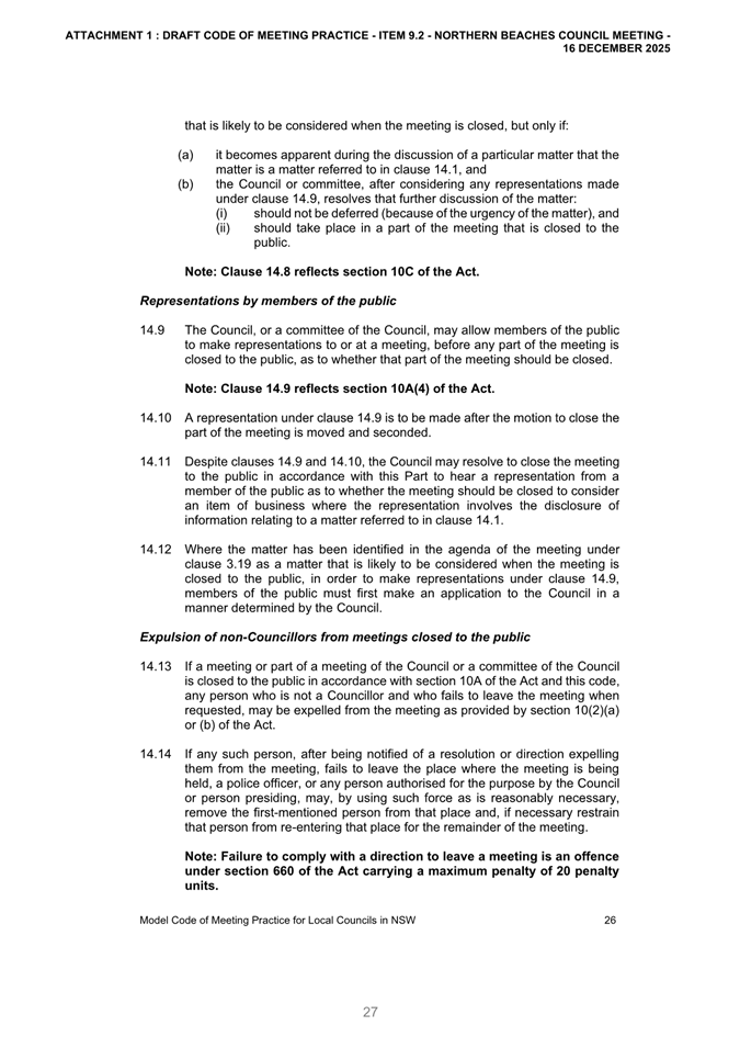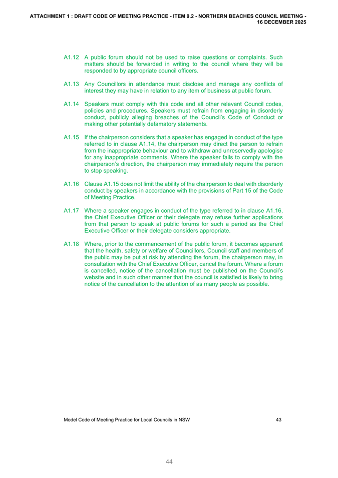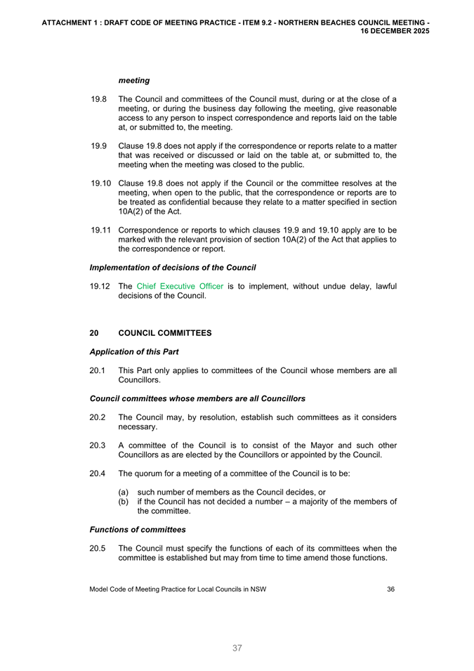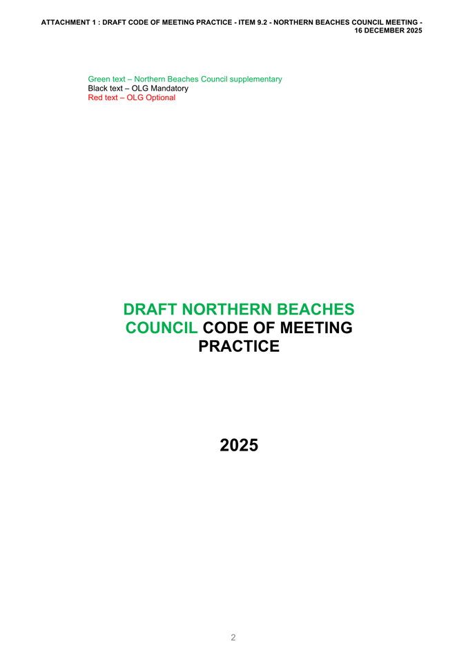 Attachment 2: December Council Meeting - Item 9.2 Outcome of Public Exhibition - Draft Code of Meeting Practice...................................................................... 663