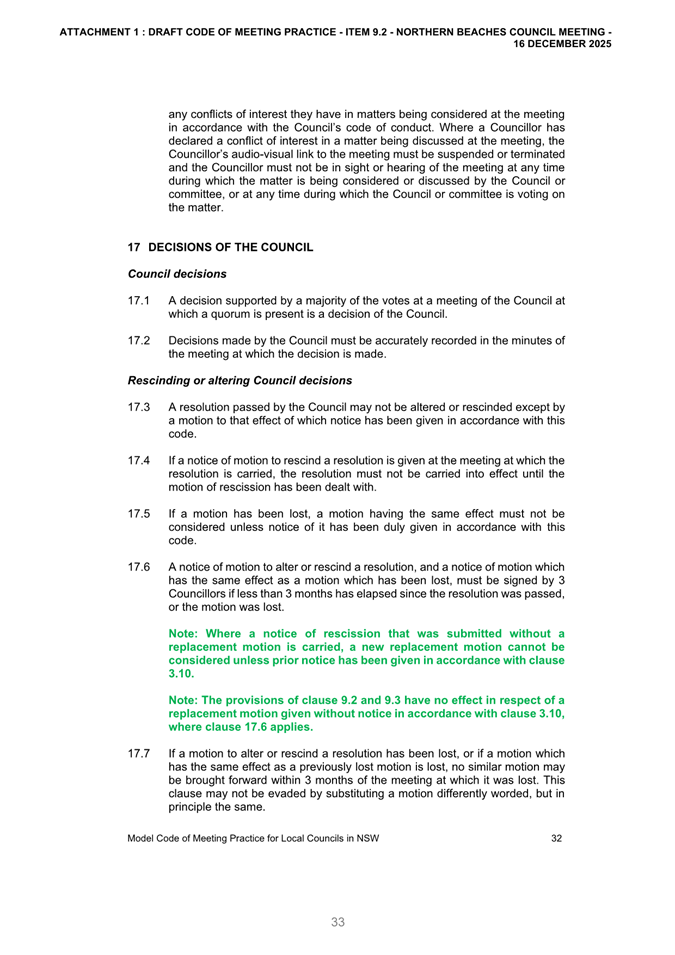 14.1 Notice of Rescission 4/2025 - Item 9.2 - Outcome of Public Exhibition - Draft Code of Meeting Practice